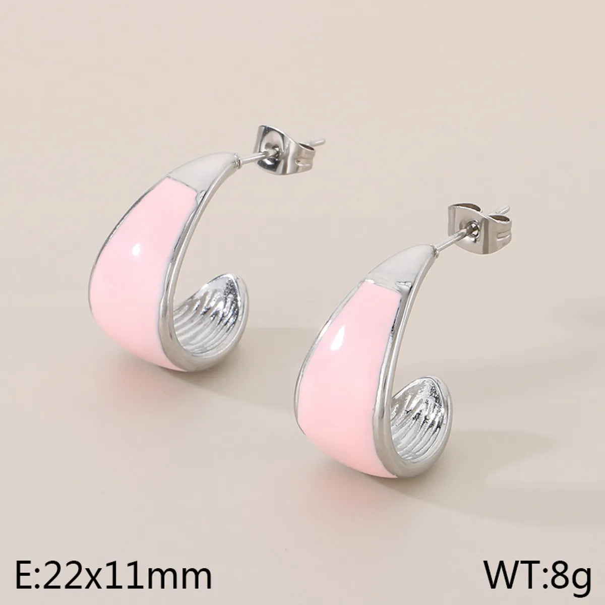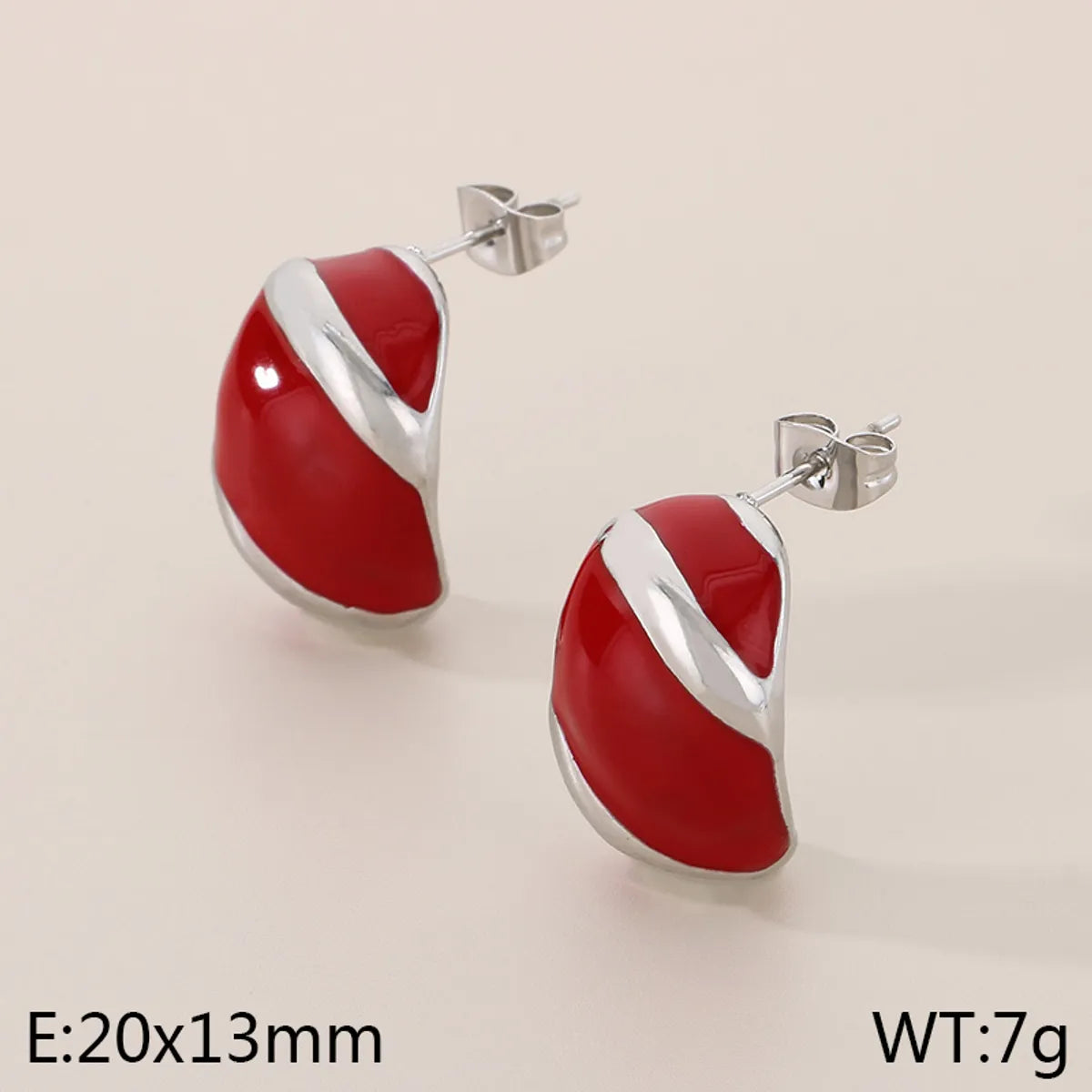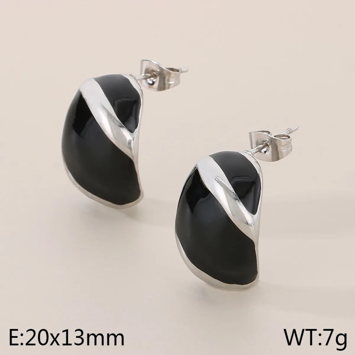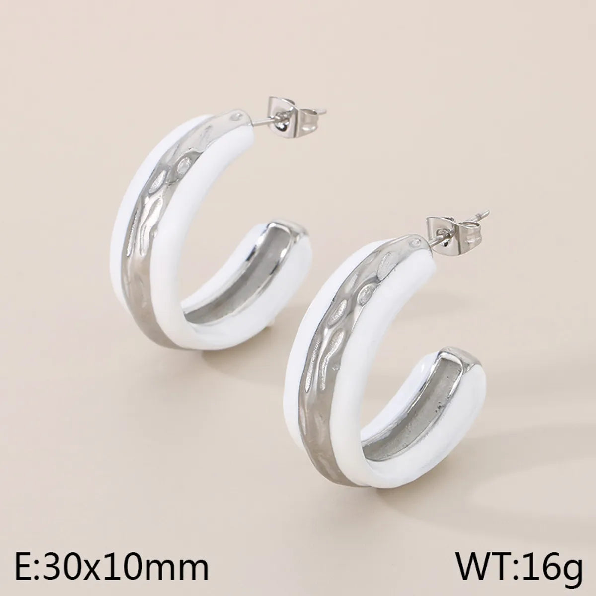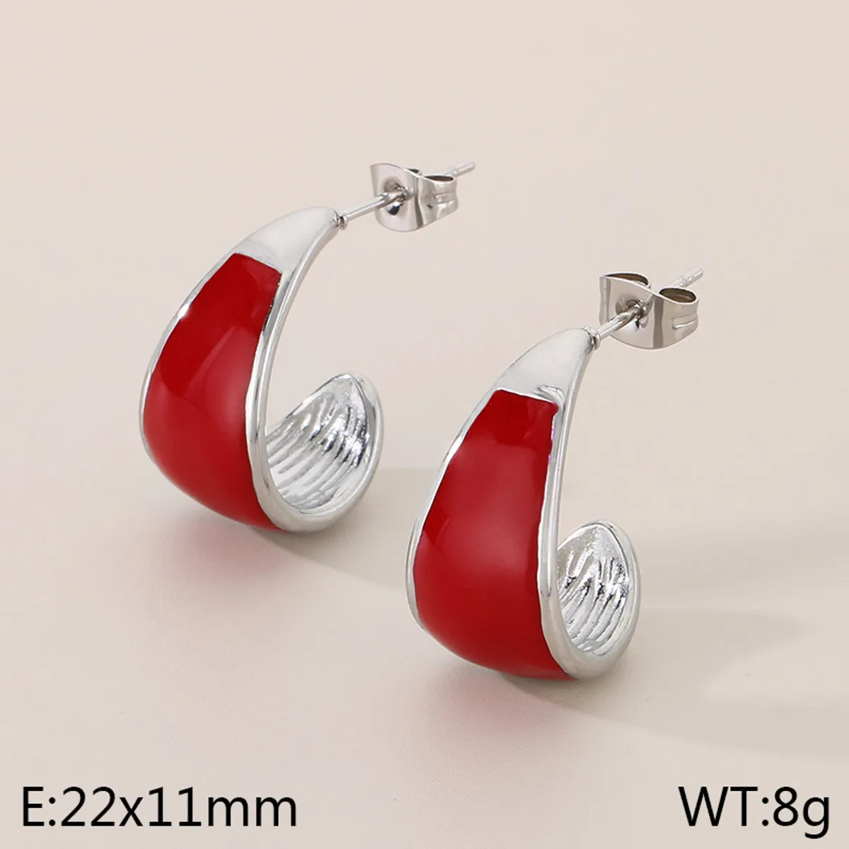1 Pair Vintage Style C Shape Enamel 304 Stainless Steel 18K Gold Plated Ear Studs