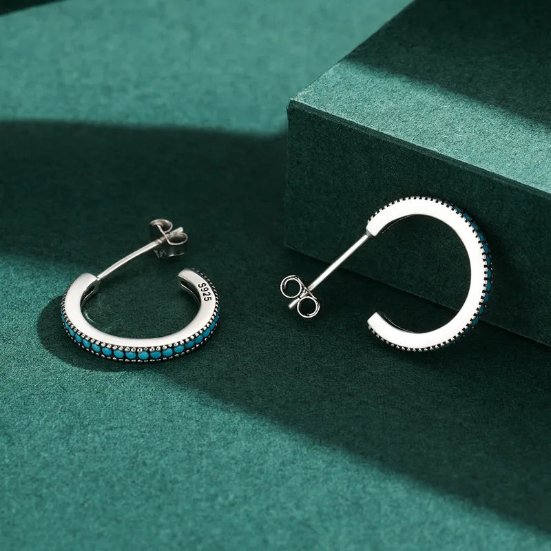 1 Pair Vintage Style Semicircle Sterling Silver Plating Inlay Turquoise Ear Studs