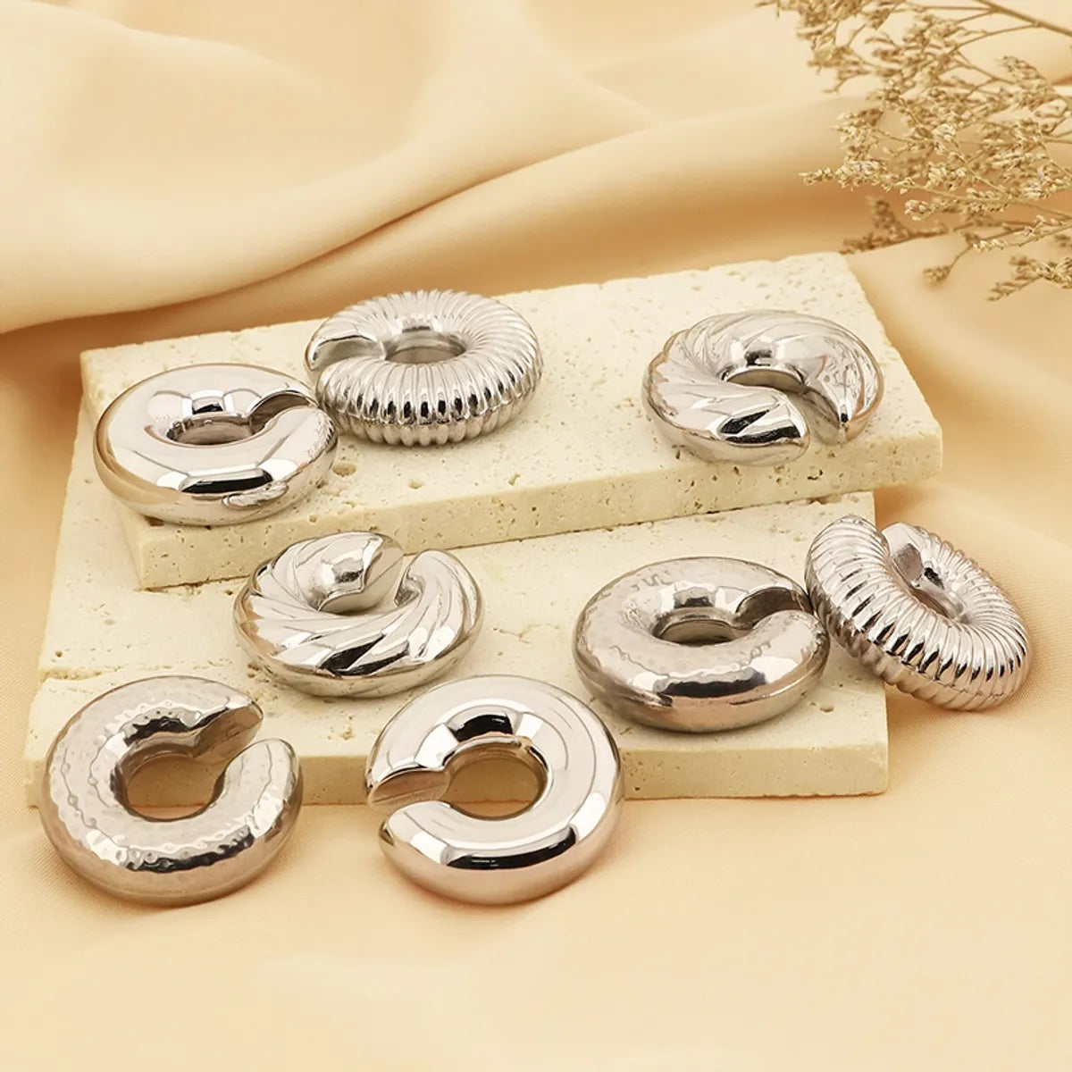 1 Pair Vintage Style U Shape Geometric Plating Titanium Steel 18K Gold Plated Ear Cuffs