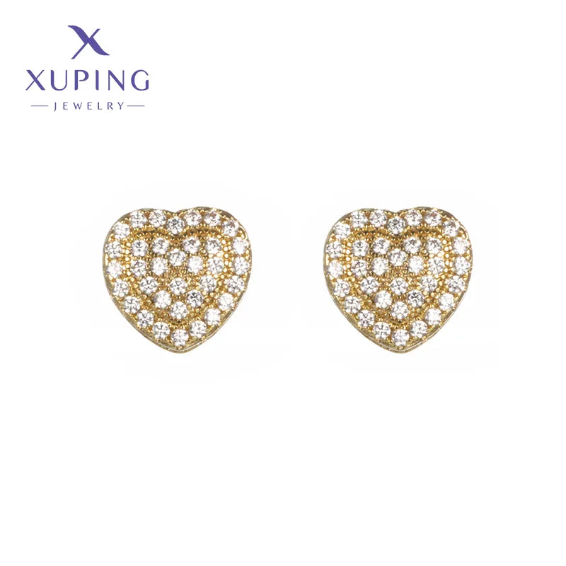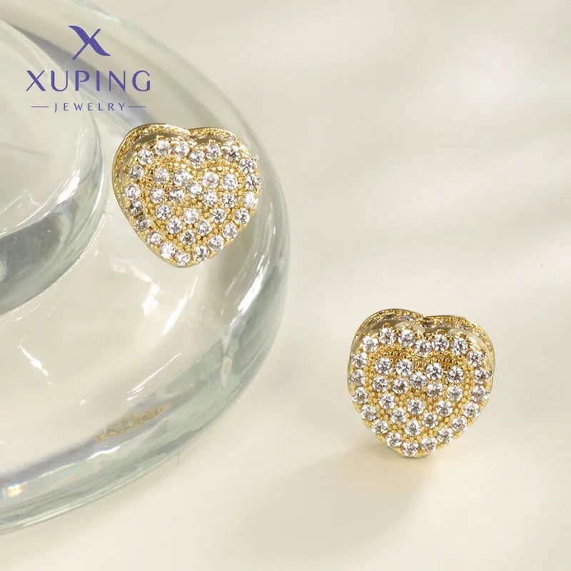 1 Pair XUPING Sweet Simple Style Heart Shape Plating Copper Artificial Gemstones 18K Gold Plated Ear Studs