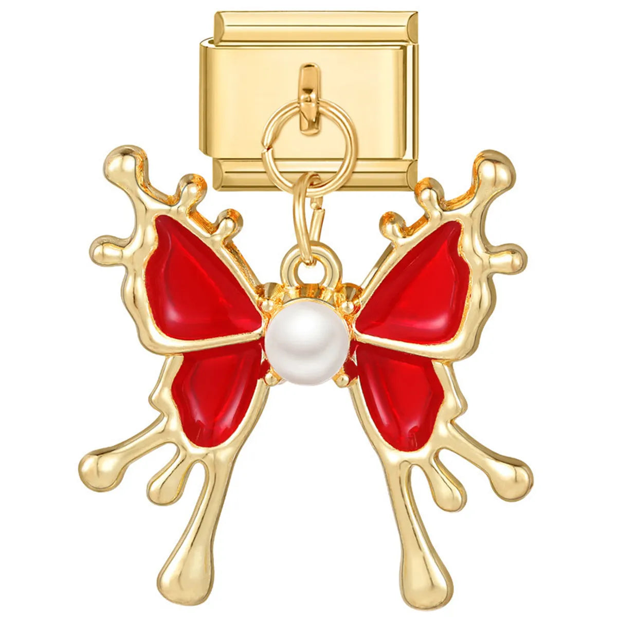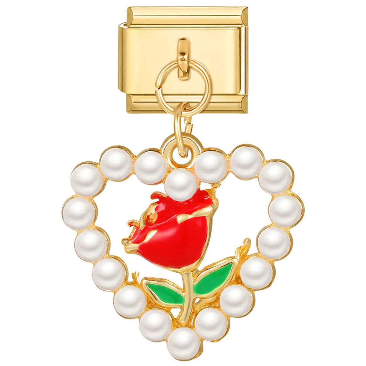 1 Piece 10*9mm 304 Stainless Steel Zircon Fruit Heart Shape Flower Italian Charms