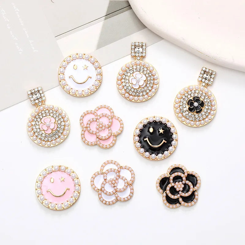 1 Piece 24 * 34mm 25*25mm Alloy Rhinestones Pearl Smile Face Flower Perfume Bottle Pendant