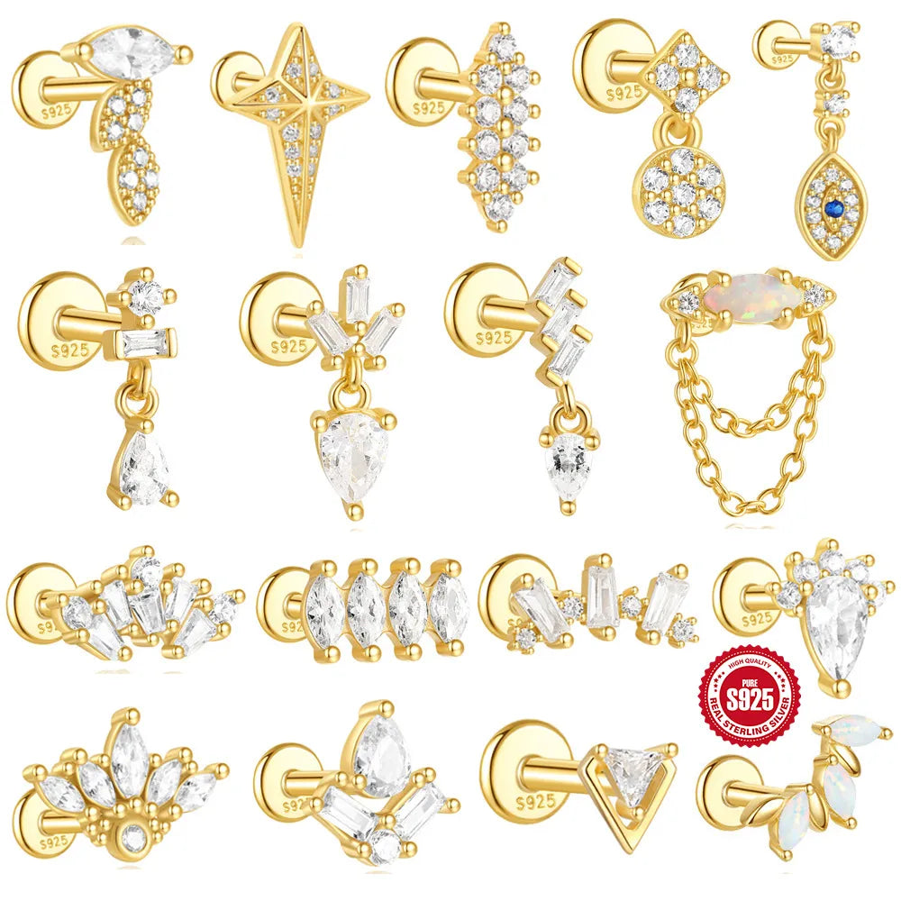 1 Piece 925 Sterling Silver Zircon 925 Sterling Silver Earrings Geometric Devil'S Eye Ear Studs