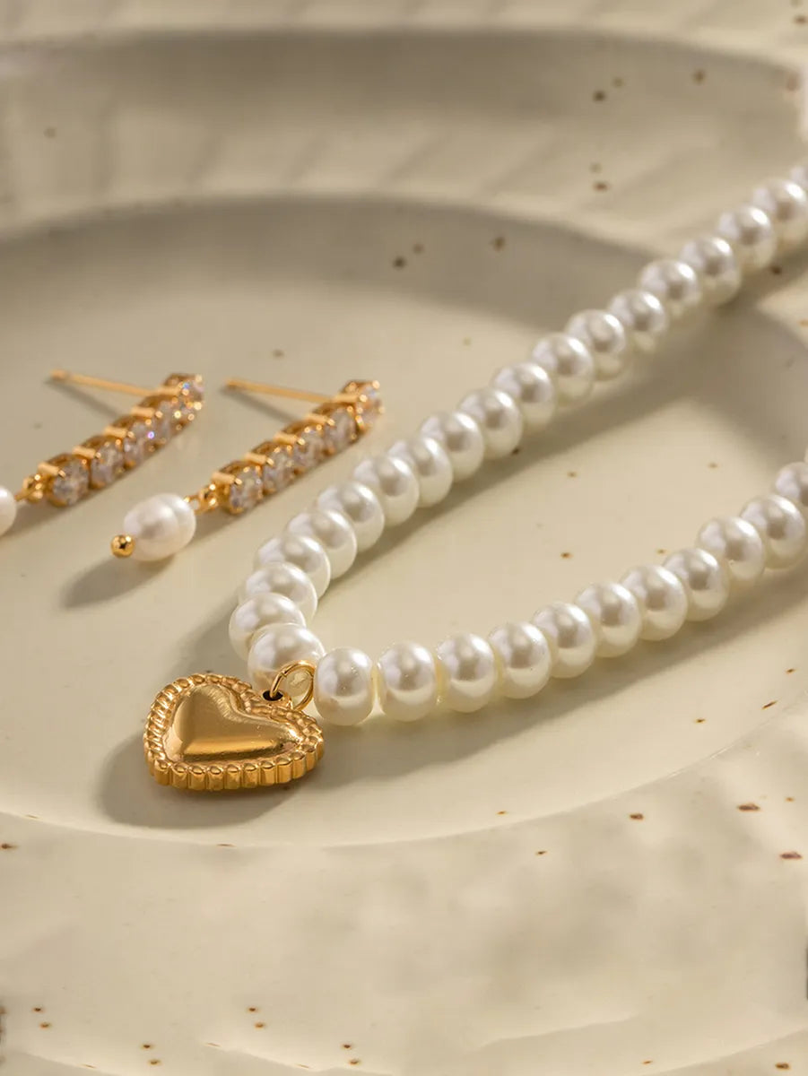 1 Piece Ins Style Heart Shape Stainless Steel Freshwater Pearl Beaded Plating Pendant Necklace