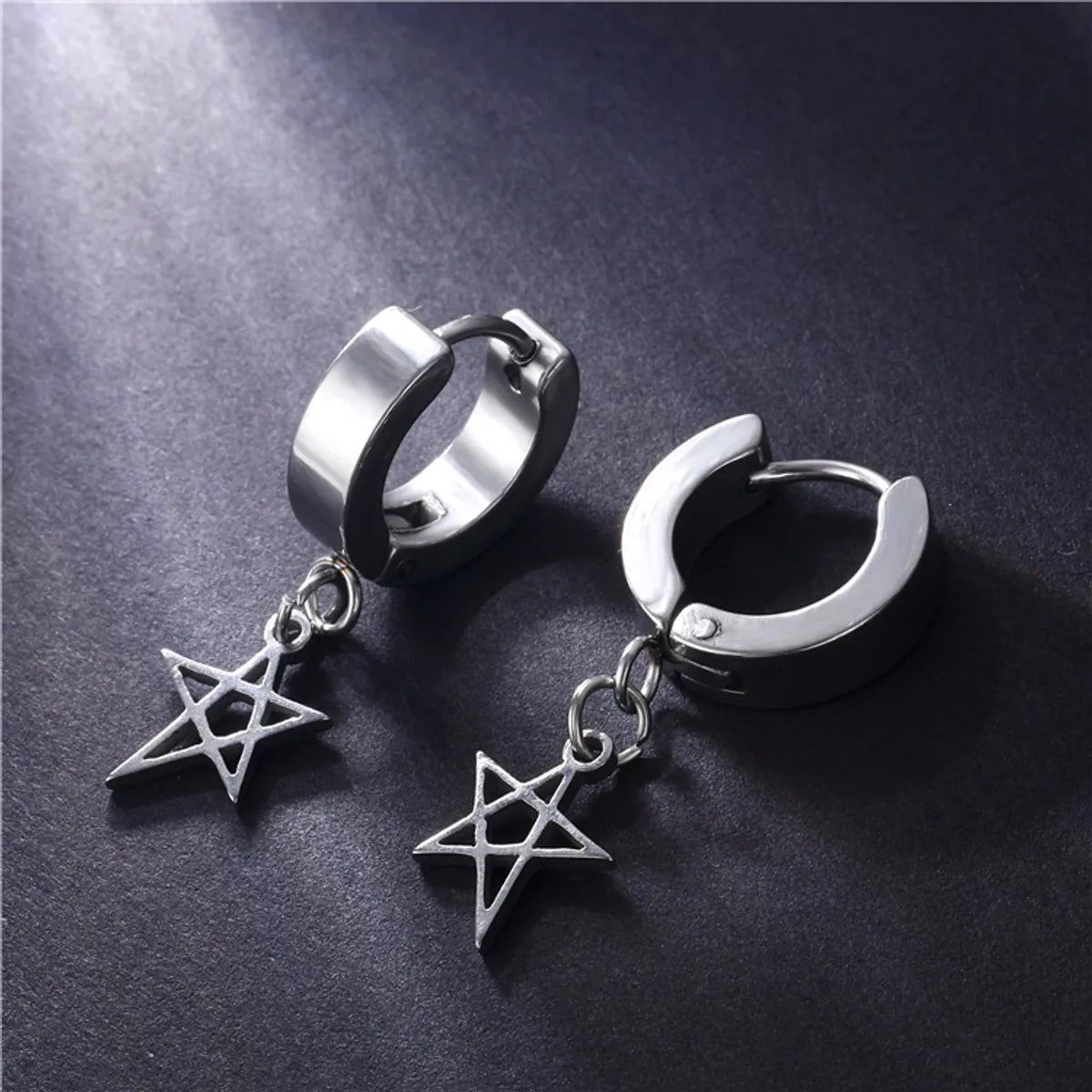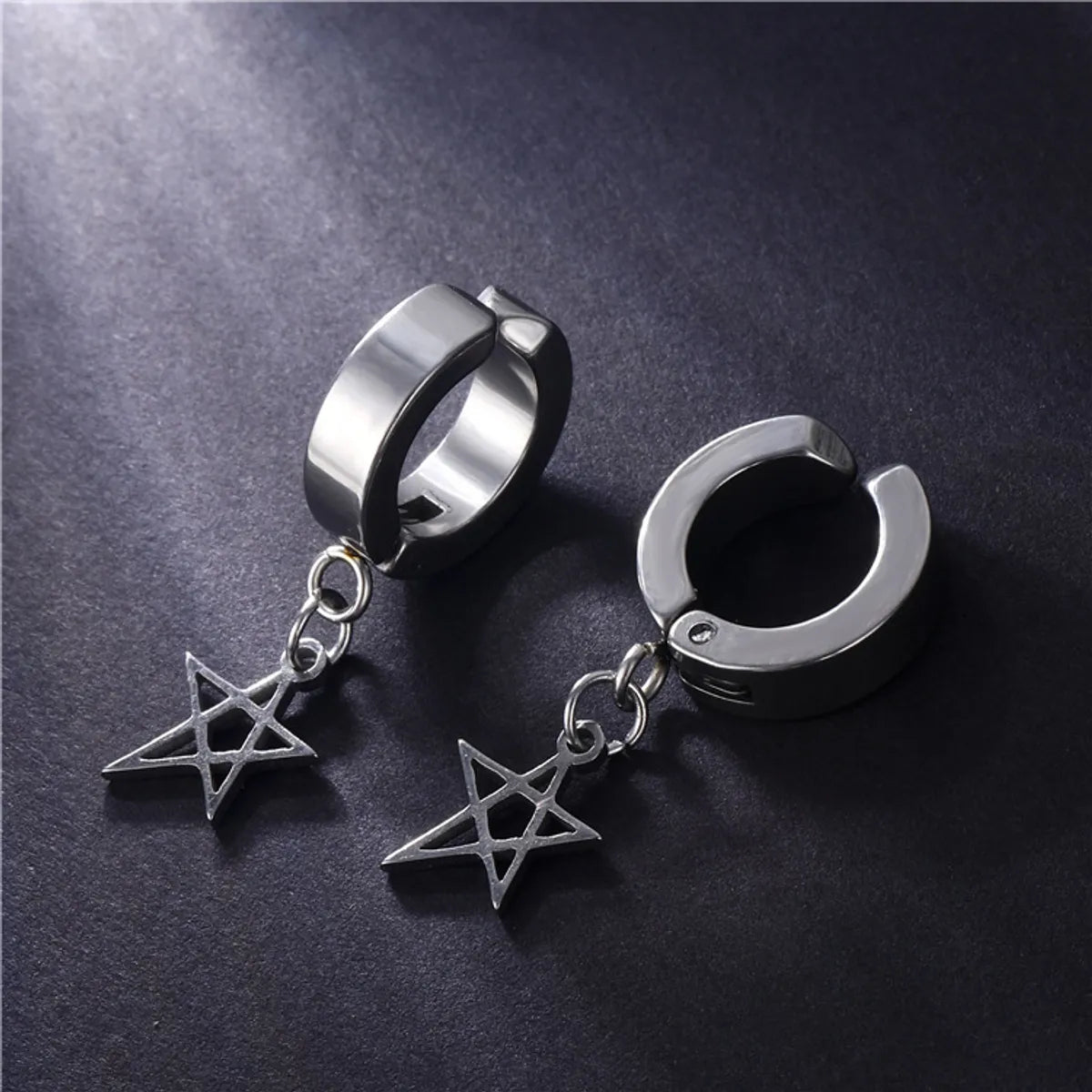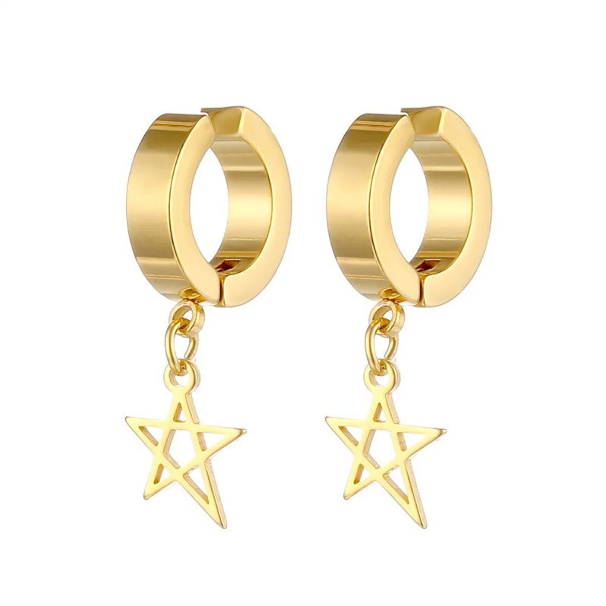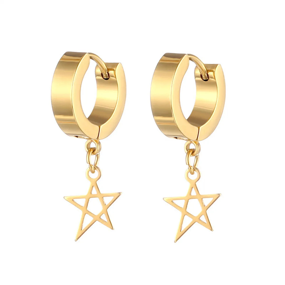 1 Piece Lady Pentagram Titanium Steel Plating Hollow Out Drop Earrings