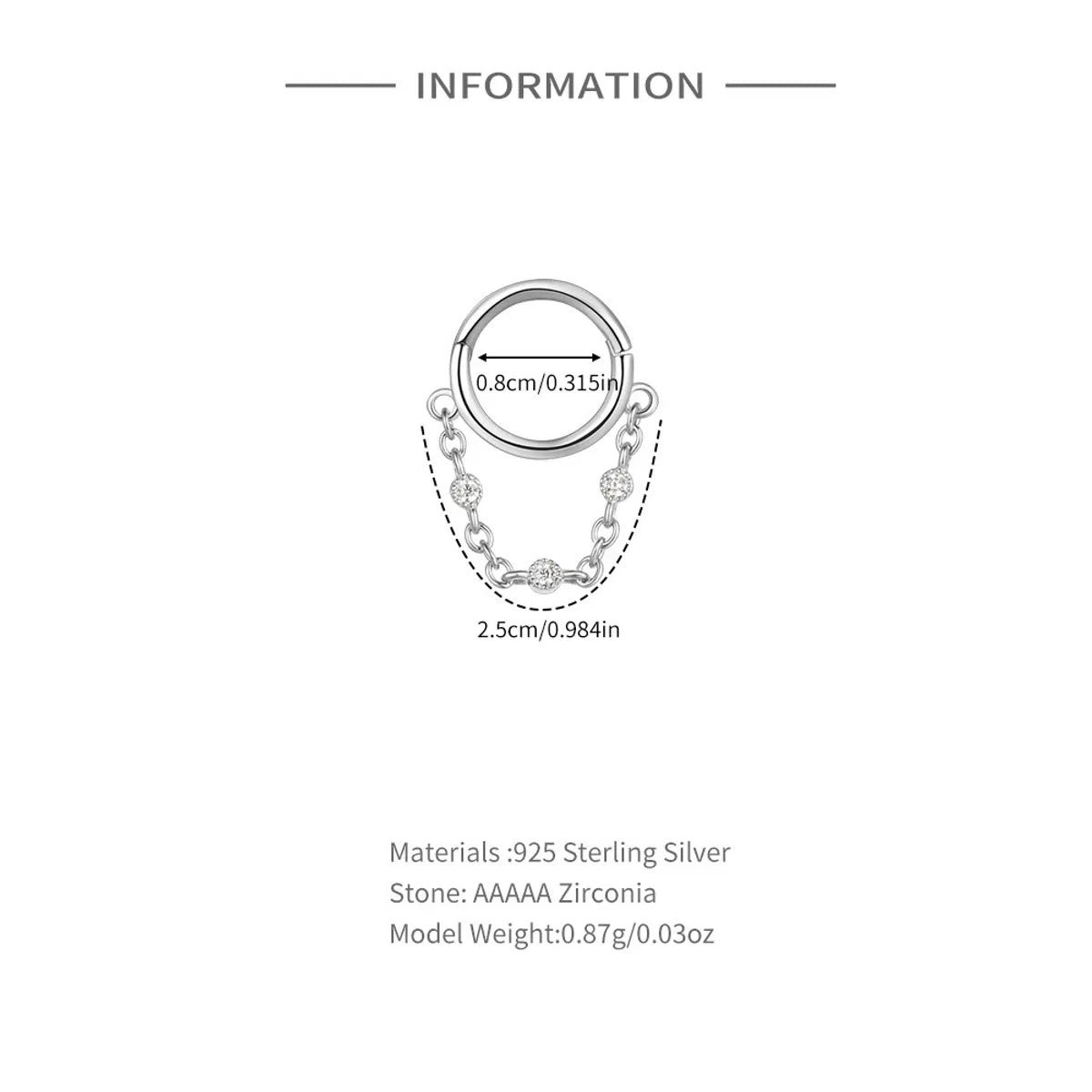 1 Piece Simple Style Solid Color Plating Chain Inlay Sterling Silver Zircon Earrings