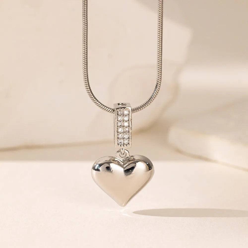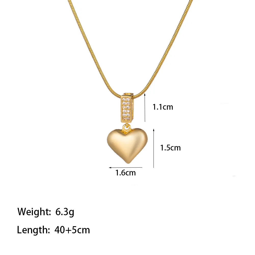 304 Stainless Steel 18K Gold Plated Cute Simple Style Commute Inlay Heart Shape Artificial Rhinestones Pendant Necklace