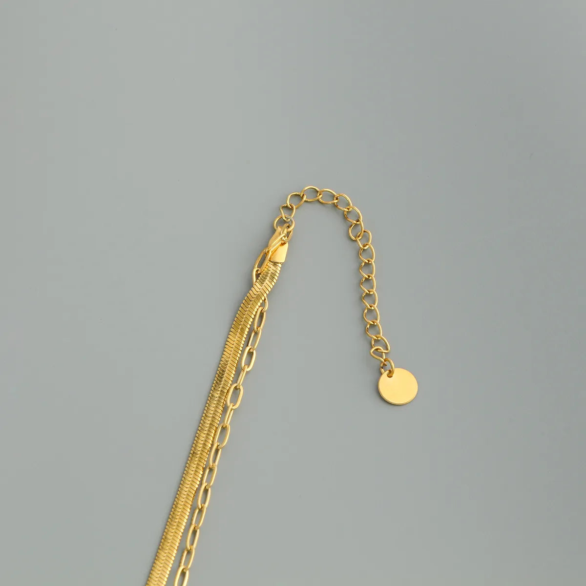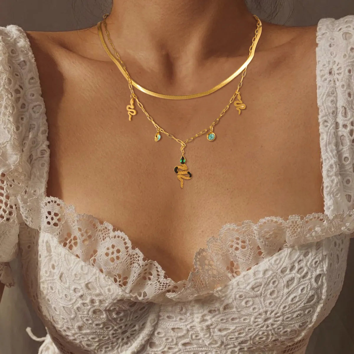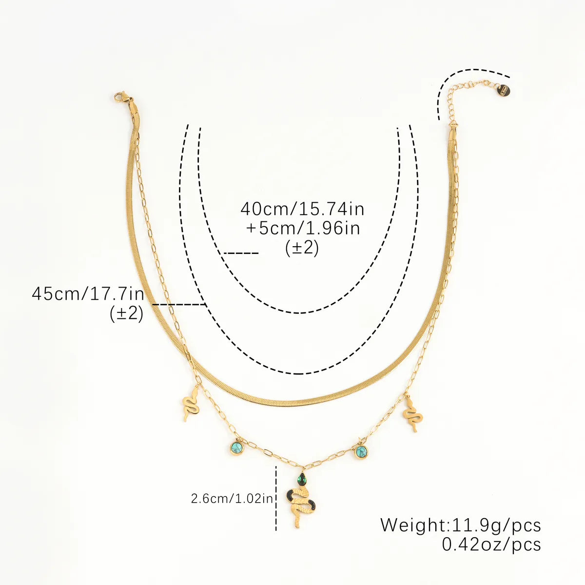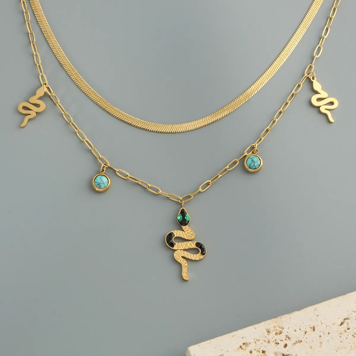 304 Stainless Steel 18K Gold Plated Hip-Hop Luxurious Plating Inlay Snake Turquoise Zircon Double Layer Necklaces
