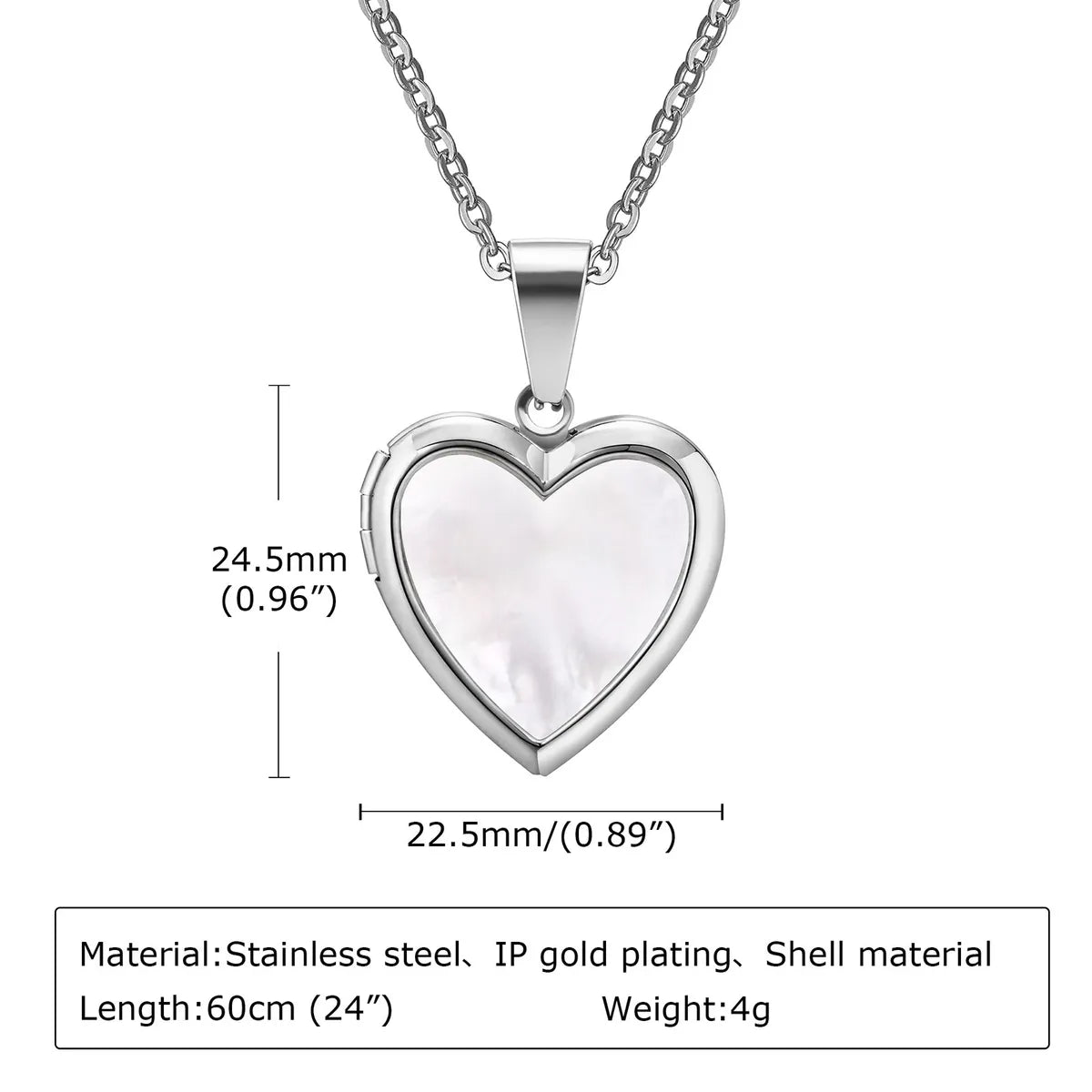304 Stainless Steel 18K Gold Plated Simple Style Inlay Heart Shape Shell Necklace Pendant