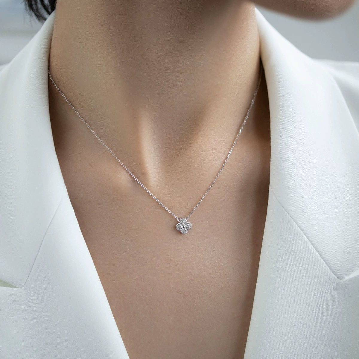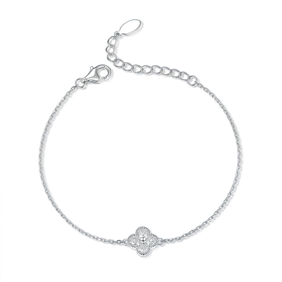 925 Sterling Silver Fourleaf Clover Bracelet Inlaid With Ice Flower Cut High Carbon Diamond Seiko Craft