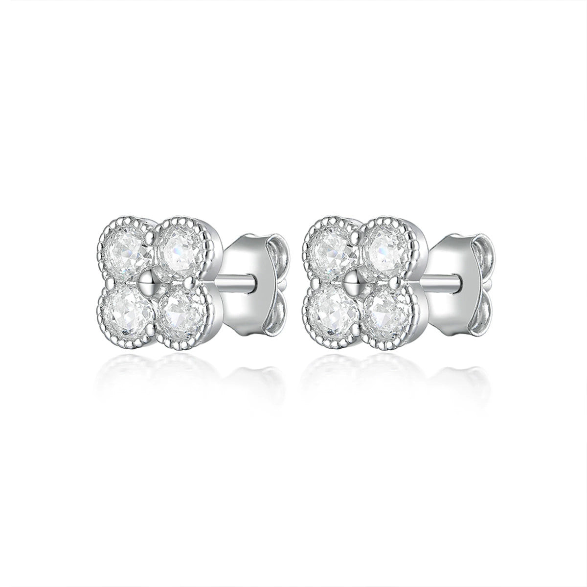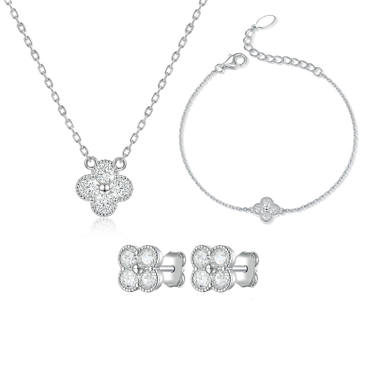 2 925 Silver Stud Earrings Four Leaf Clover Bracelet