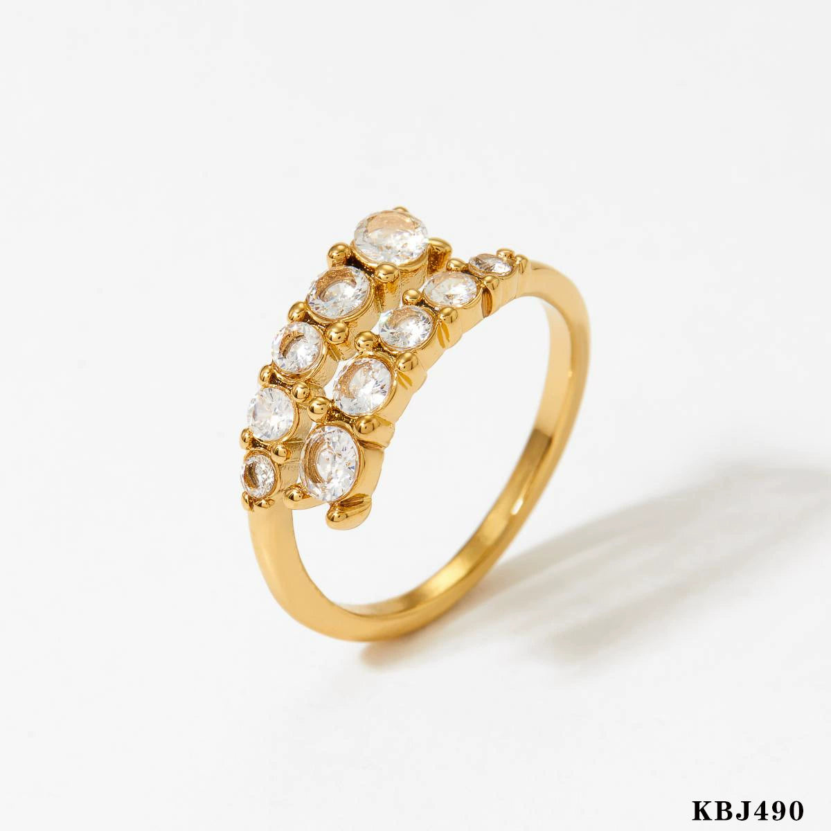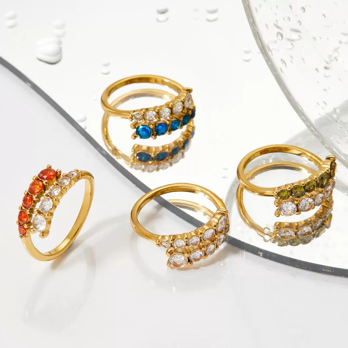 Adjustable Opening Ring Stainless Steel Zircon Inlay Simple Geometric Electroplated Women's Ring