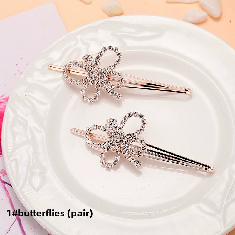 Adult Women's Elegant Rhinestone Hair Clip With Plant Flowers Style Fresh And Sweet Word Clip Jewelry