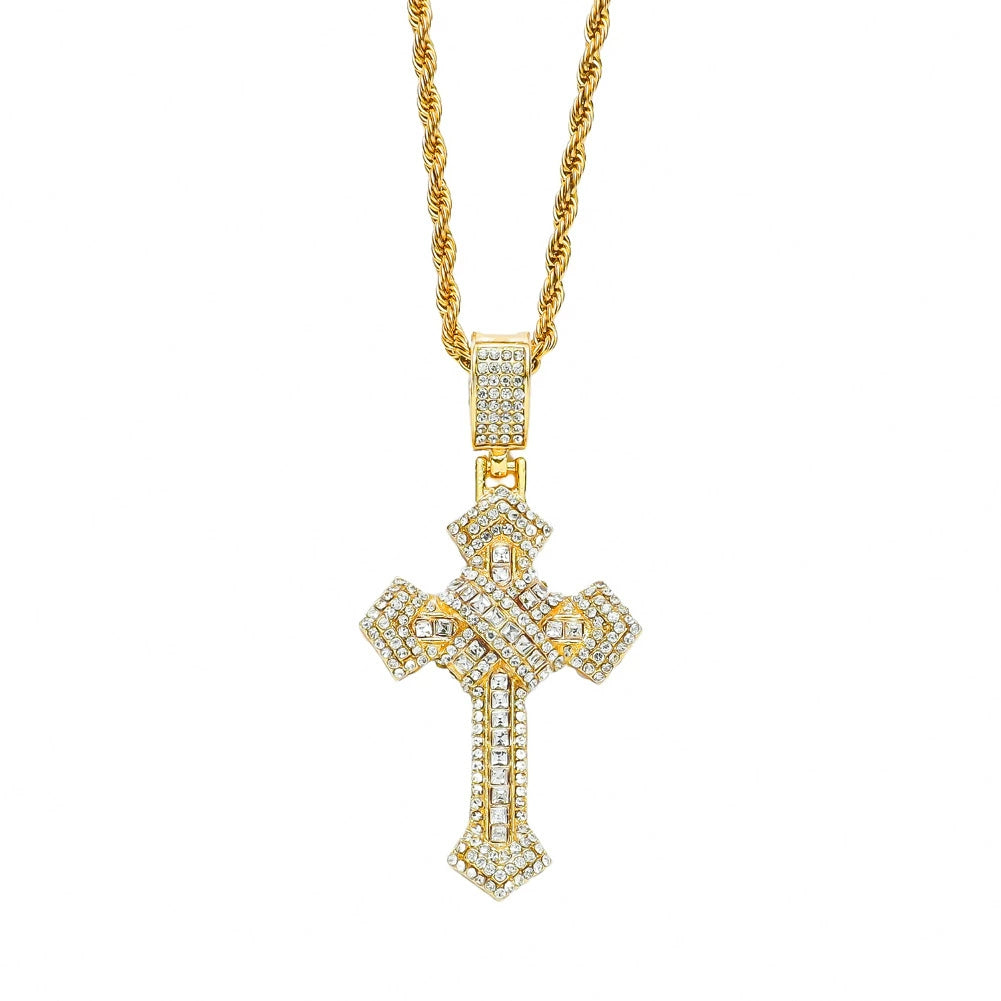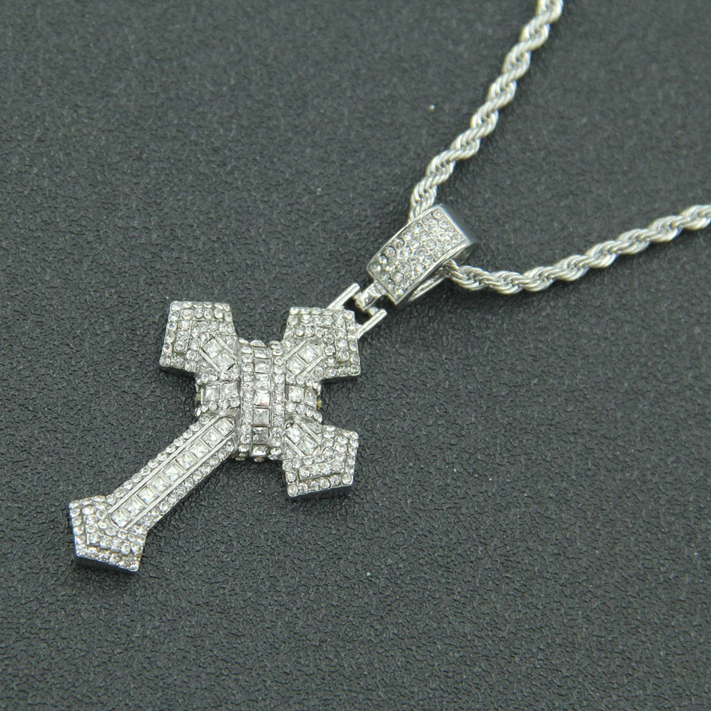 Alloy Hiphop Threedimensional Diamond Cross Pendant Necklace