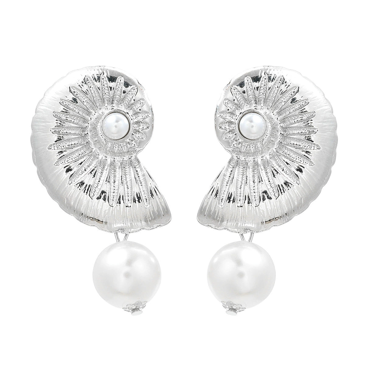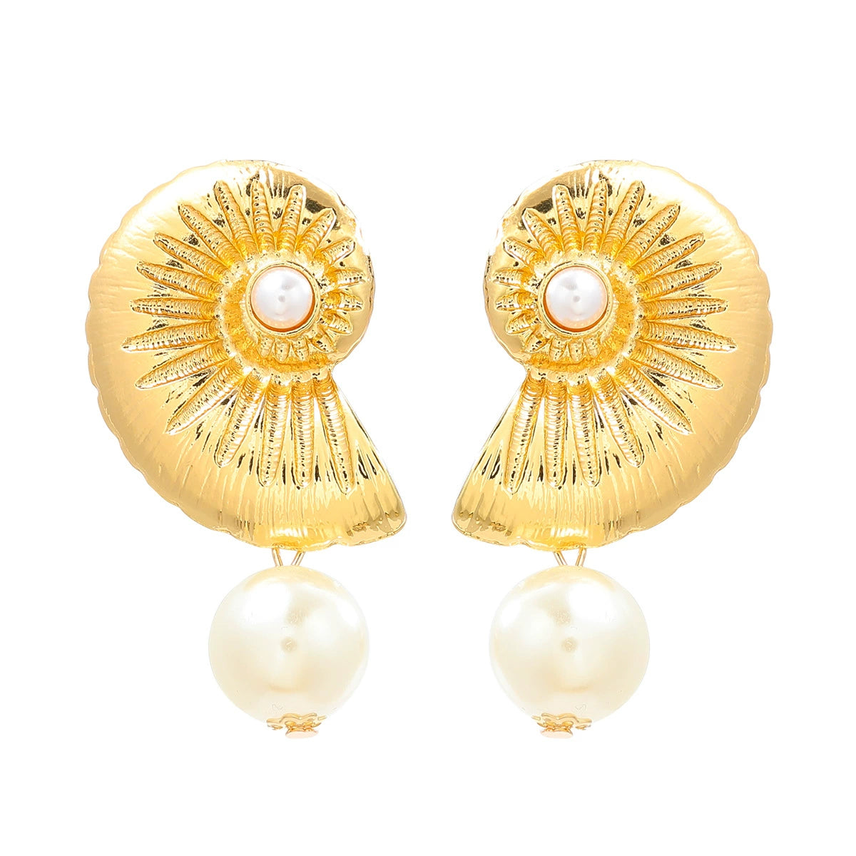 Alloy Imitation Pearl Conch Earrings Women's Geometric Style Electroplated Jewelry