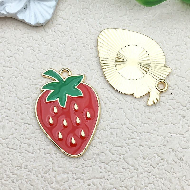 Alloy Jewelry Accessories With Three Dimensional Dripping Fruit Strawberry Design For Diy Bracelet Earrings Necklace