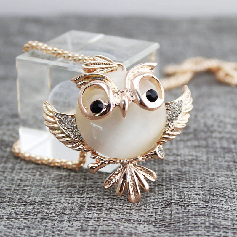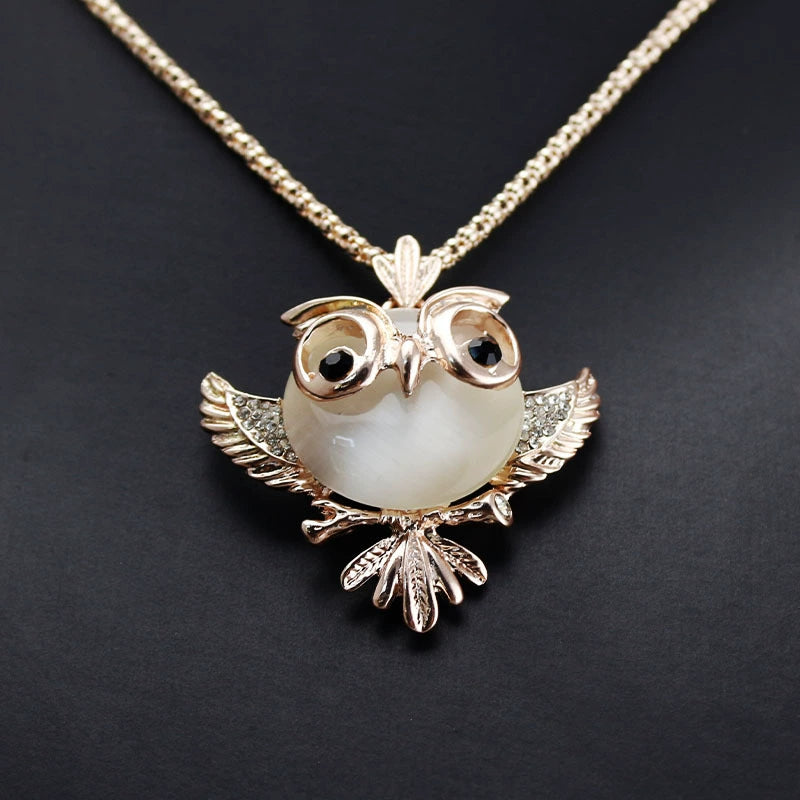 Alloy Owl Inlaid Opal Women's Snake Bone Chain Sweater Chain