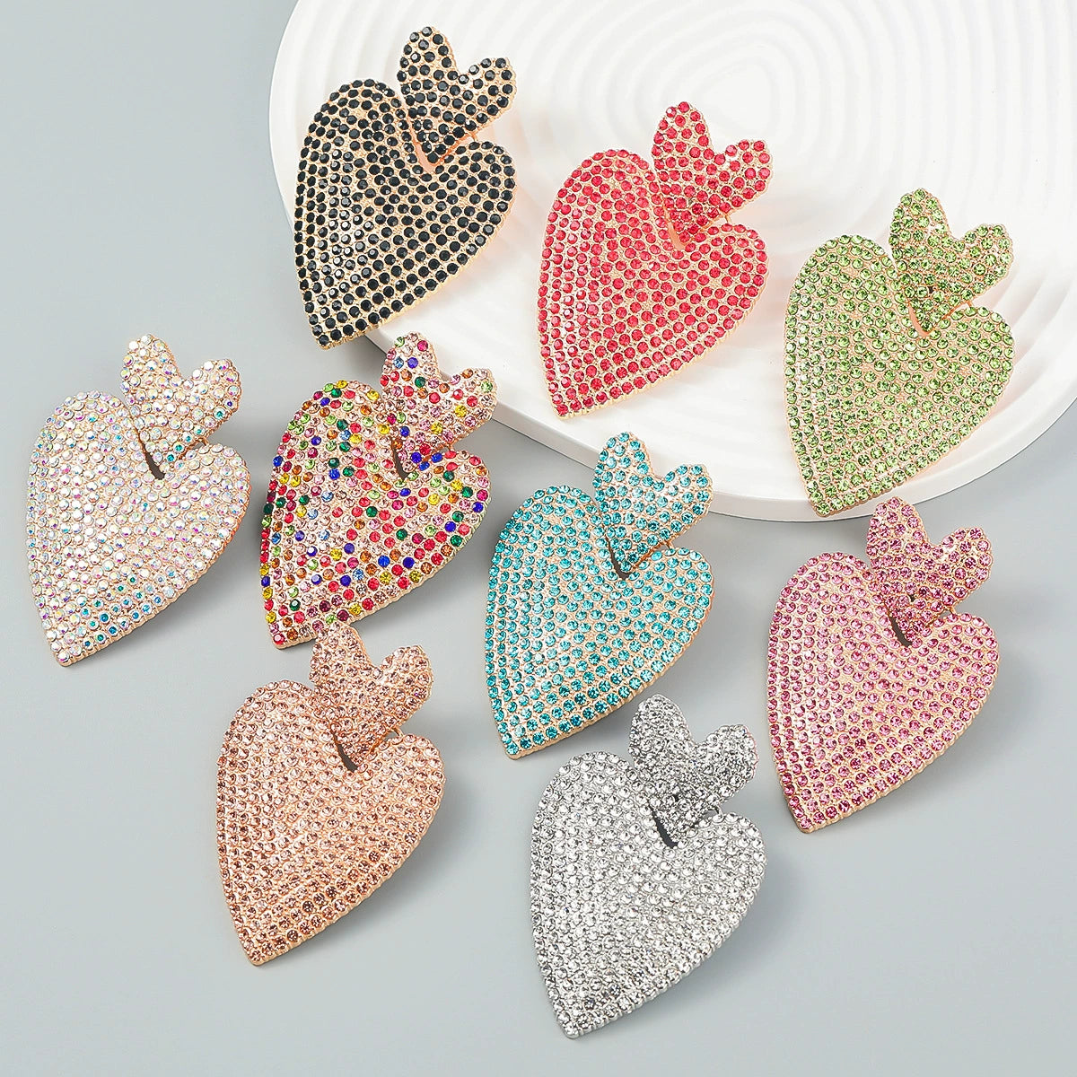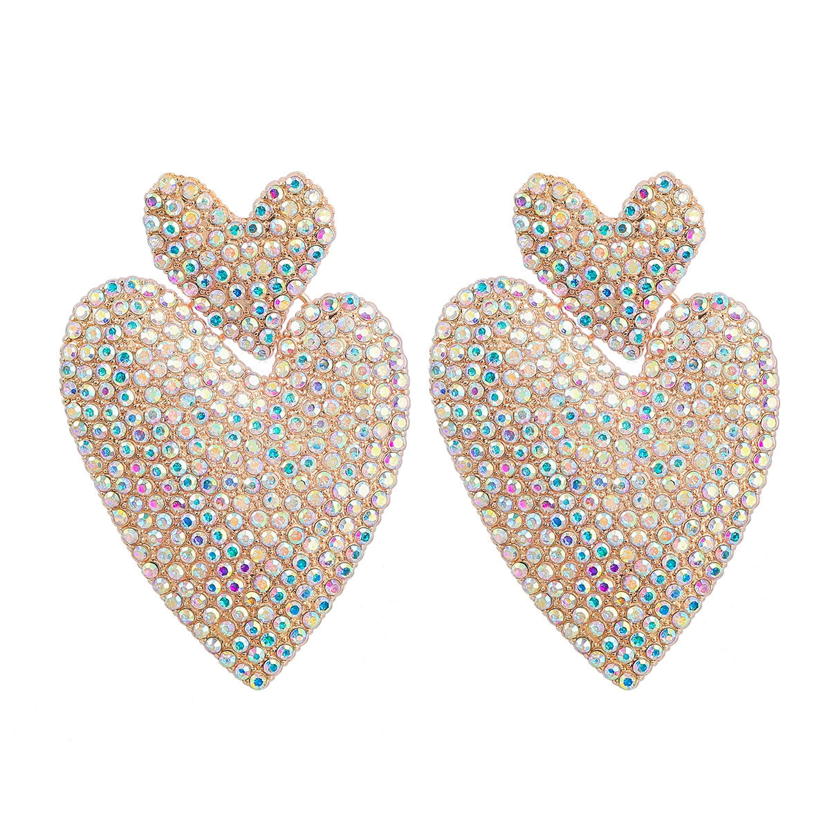 Alloy Rhinestone Heartshaped Colored Diamond Earrings For Women