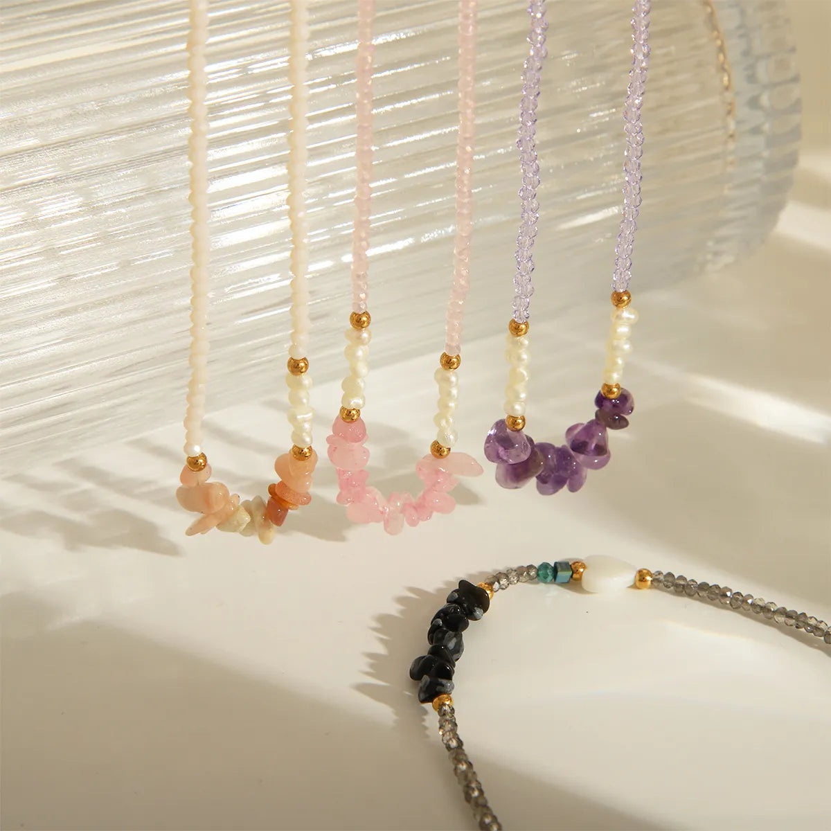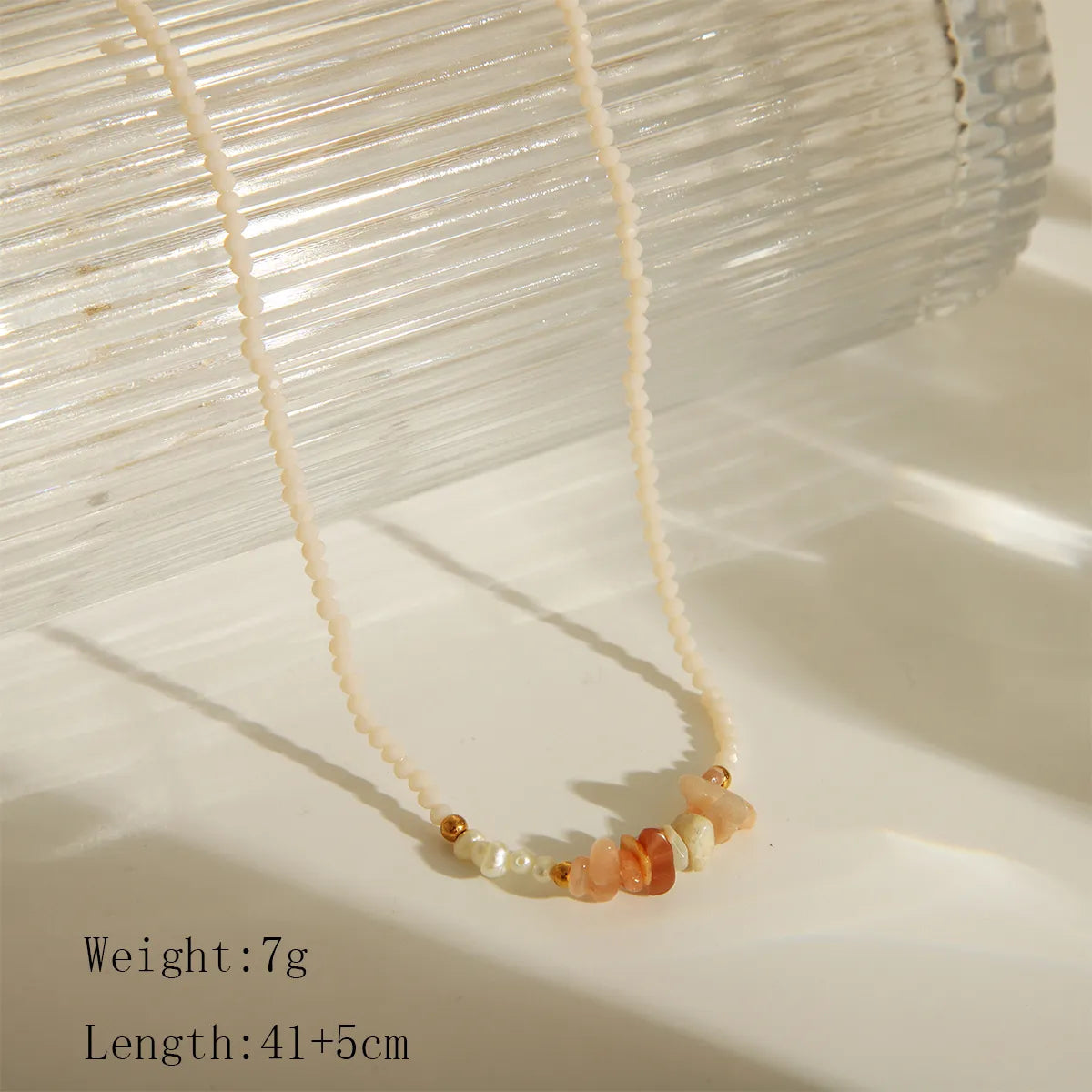 Beach Sweet Solid Color 18K Gold Plated Natural Stone 304 Stainless Steel Natural Pearl Natural Stone Wholesale Necklace