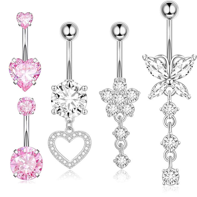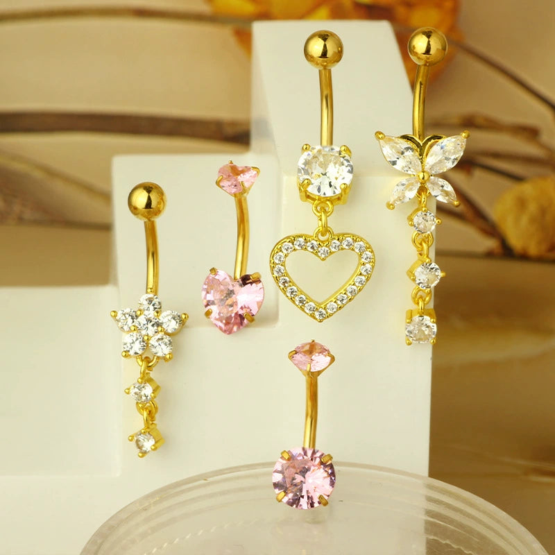 Belly Button Ring Set Stainless Steel Heartshaped Geometric Style Electroplated Body Piercing Jewelry