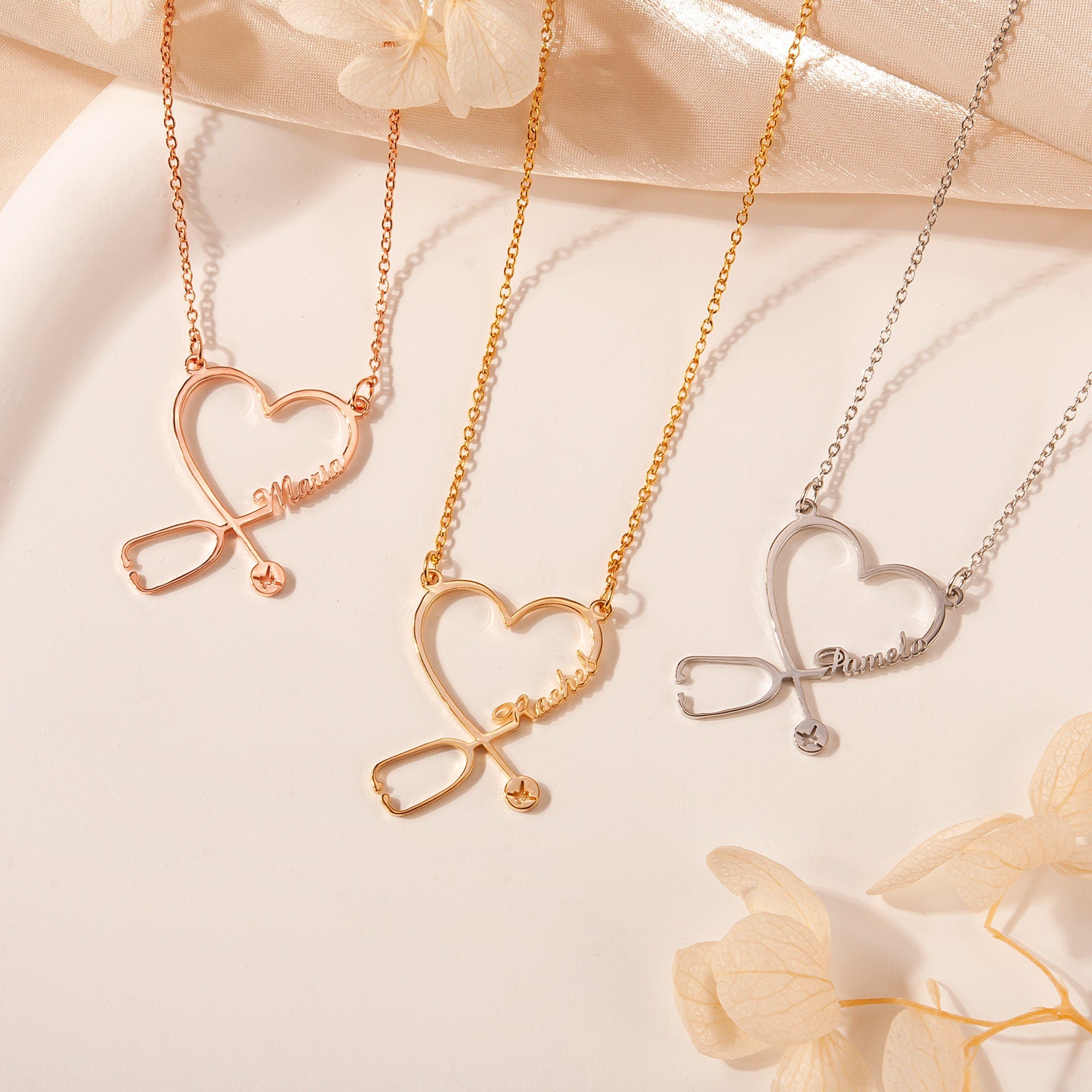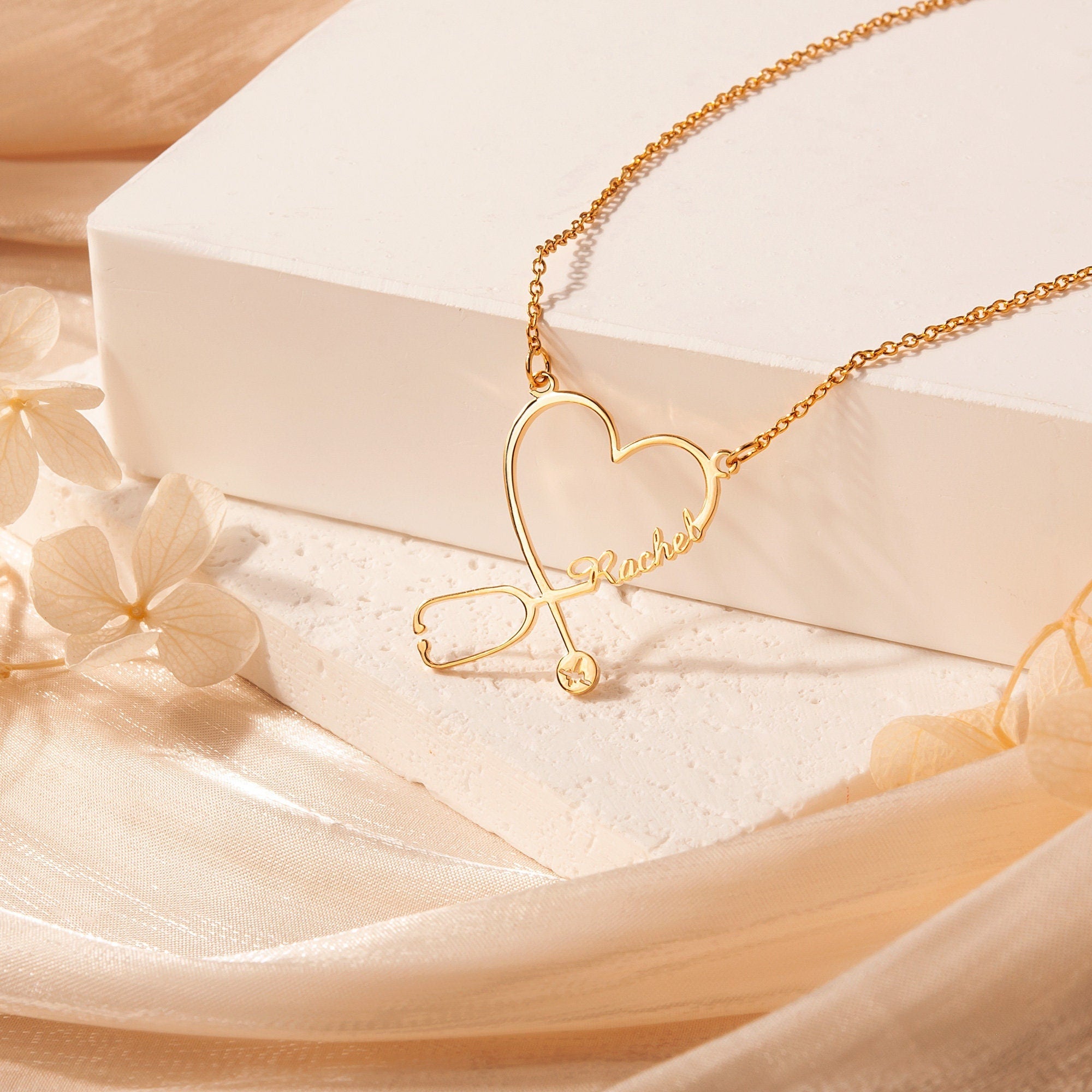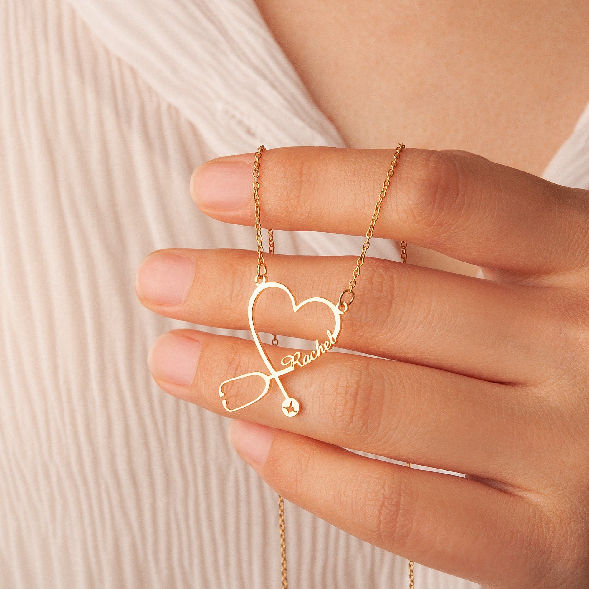 Minimalist Handmade jewelry Stethoscope Necklace ! Personalize this stunning piece with your Nurse/Doctor/Medical Student friend's name for a truly meaningful and unique accessory. Perfect for gifting or treating yourself, this necklace is a timeless reminder of the love and connection you share. A unique birthday gift for your Medical Student friend.