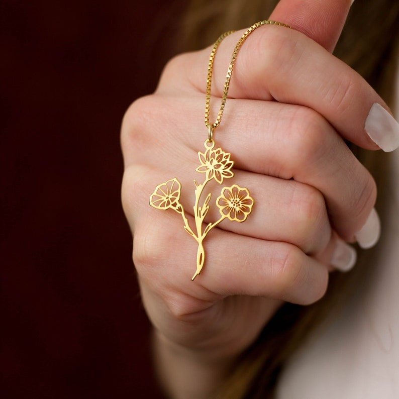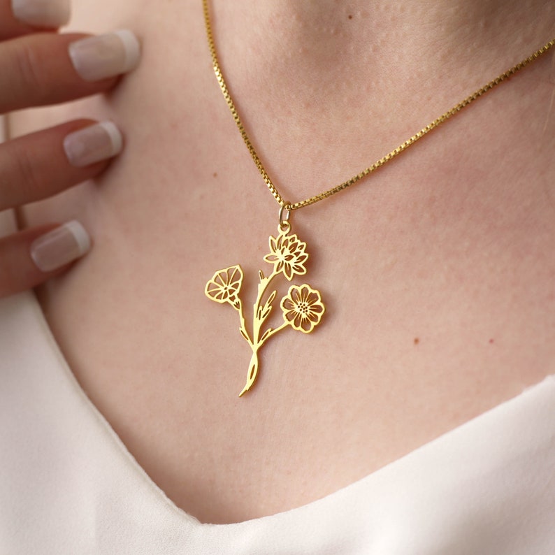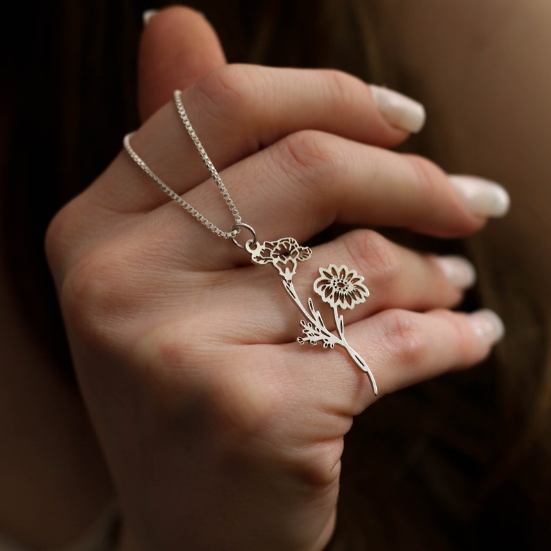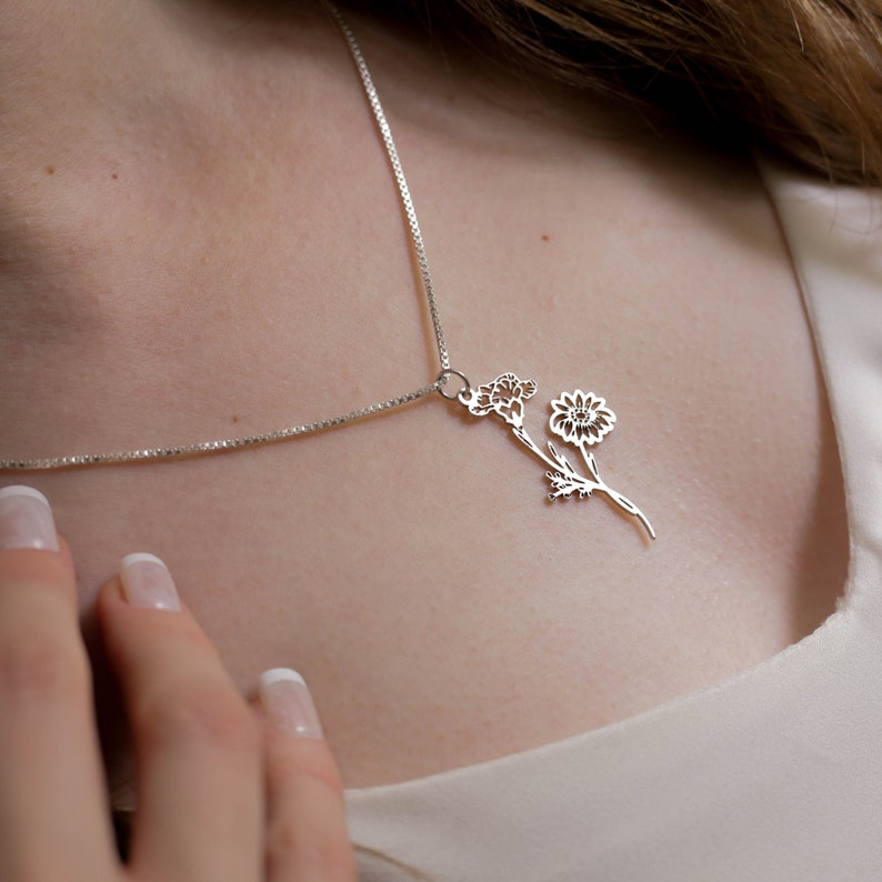 Celebrate motherhood and the beauty of nature with our stunning birth flower name necklace. This elegant piece of jewelry features a delicate chain and a customizable pendant adorned with a unique floral design representing the birth month of your loved one. You can personalize the necklace by adding their name, making it a heartfelt and meaningful gift that they will cherish forever.