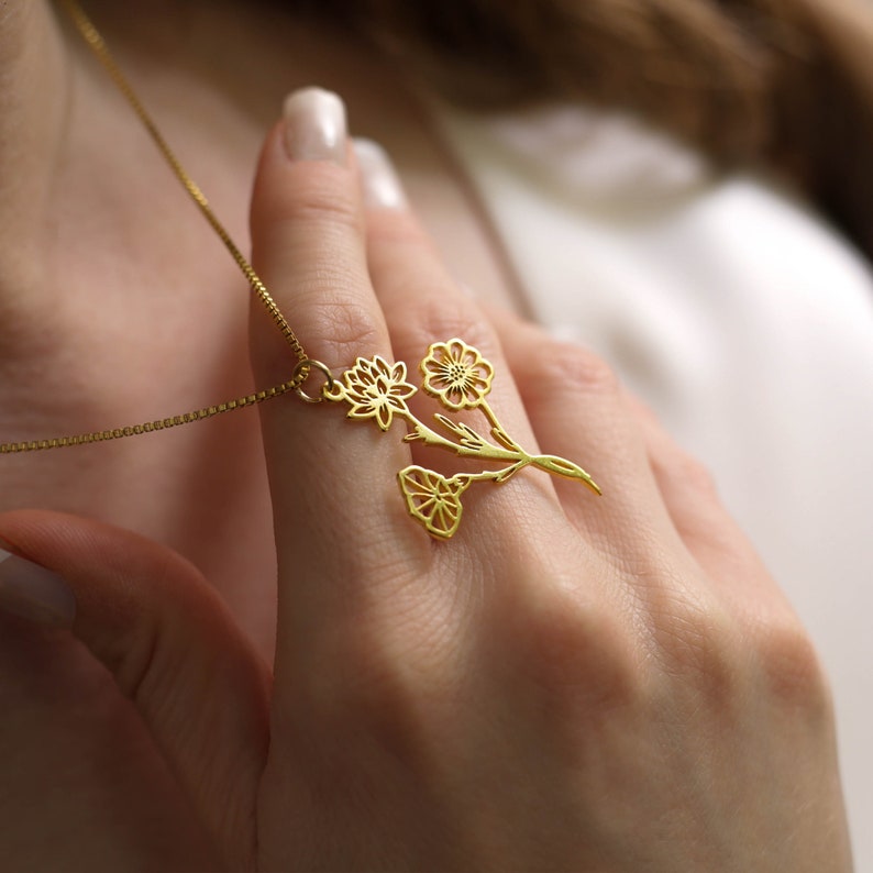 Birth Month Flower Bouquet Necklace For Mother's Day, Combined Birth Flower Bouquet Necklace, Custom Grandma Gift Jewelry with Birth Flower