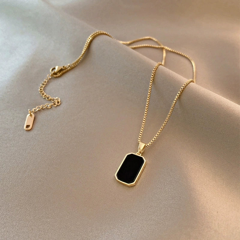 Black Square Titanium Steel Women's Hip Hop Creative Fashion Necklace With Electroplating Treatment And Geometric Styling