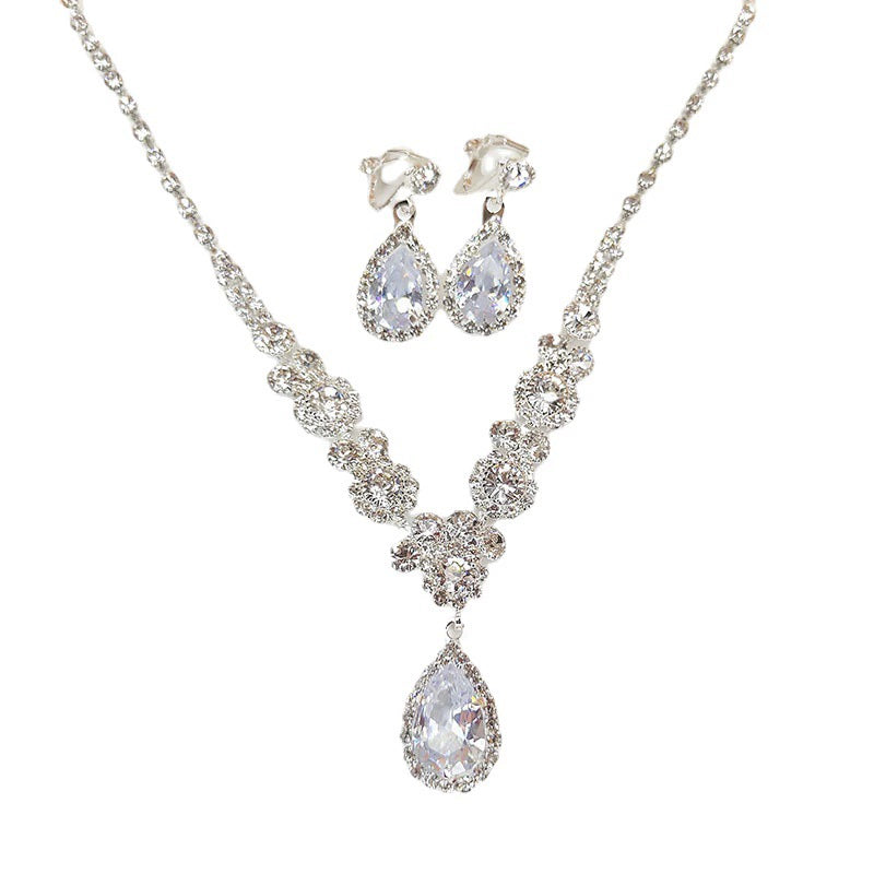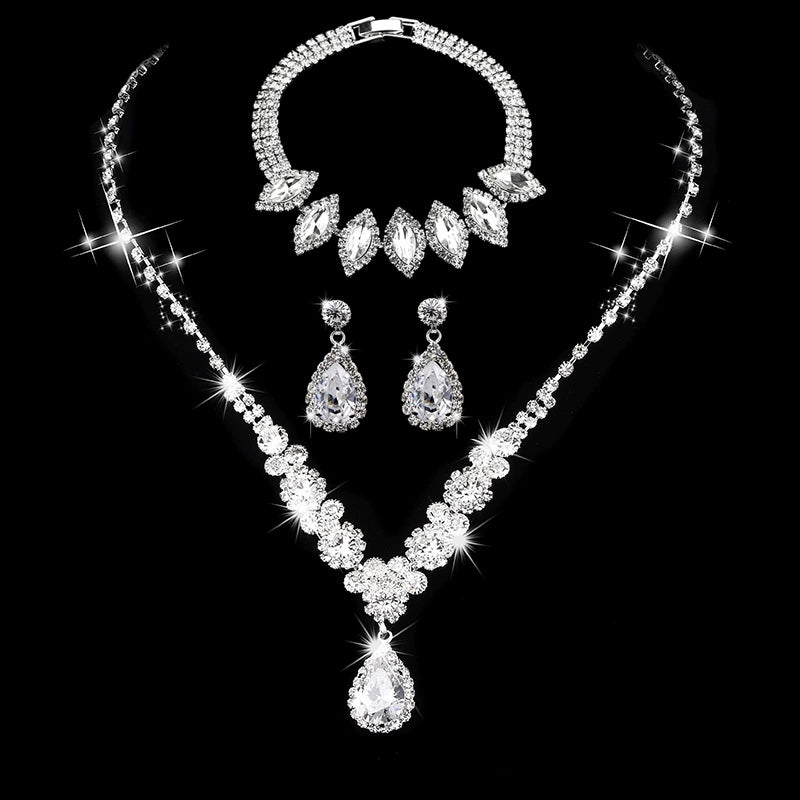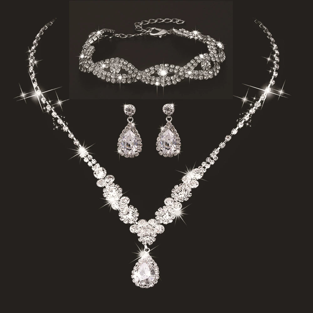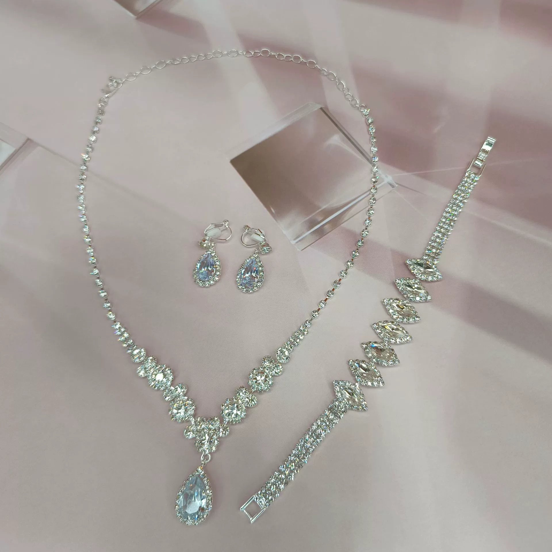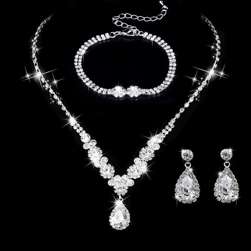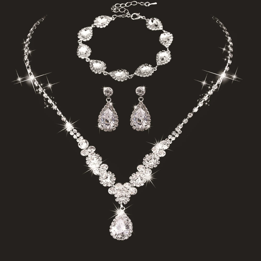 Bride Wedding Jewelry Set Threepiece Set Brilliant Rhinestone Zircon Tears Drop Necklace Earrings Bracelet