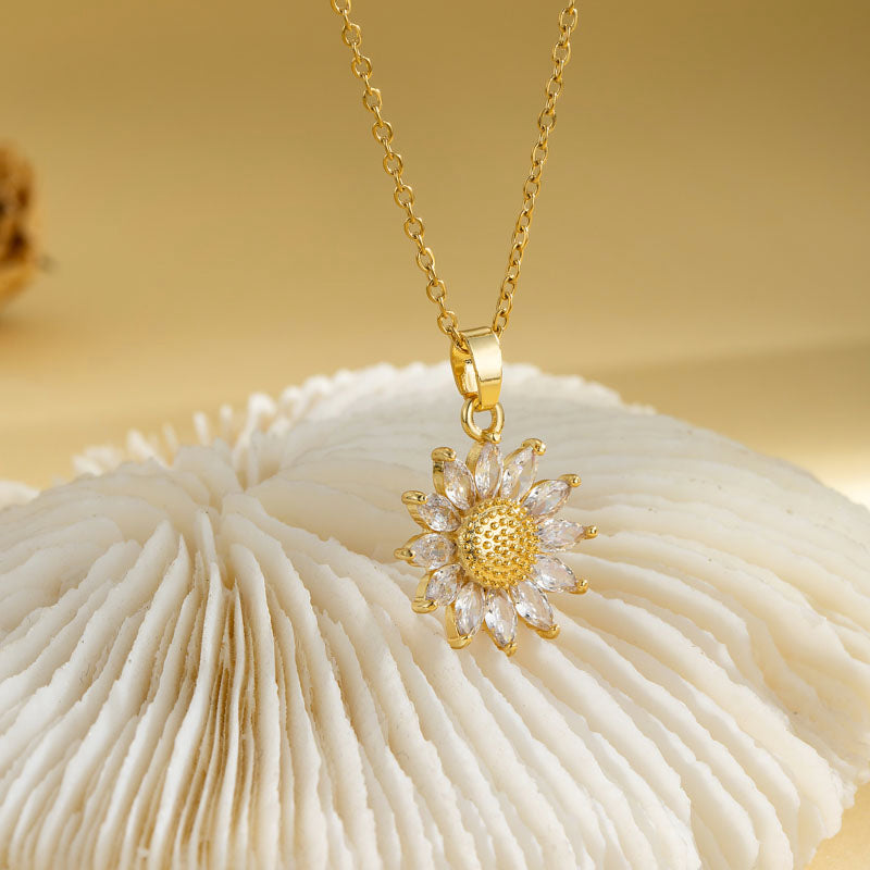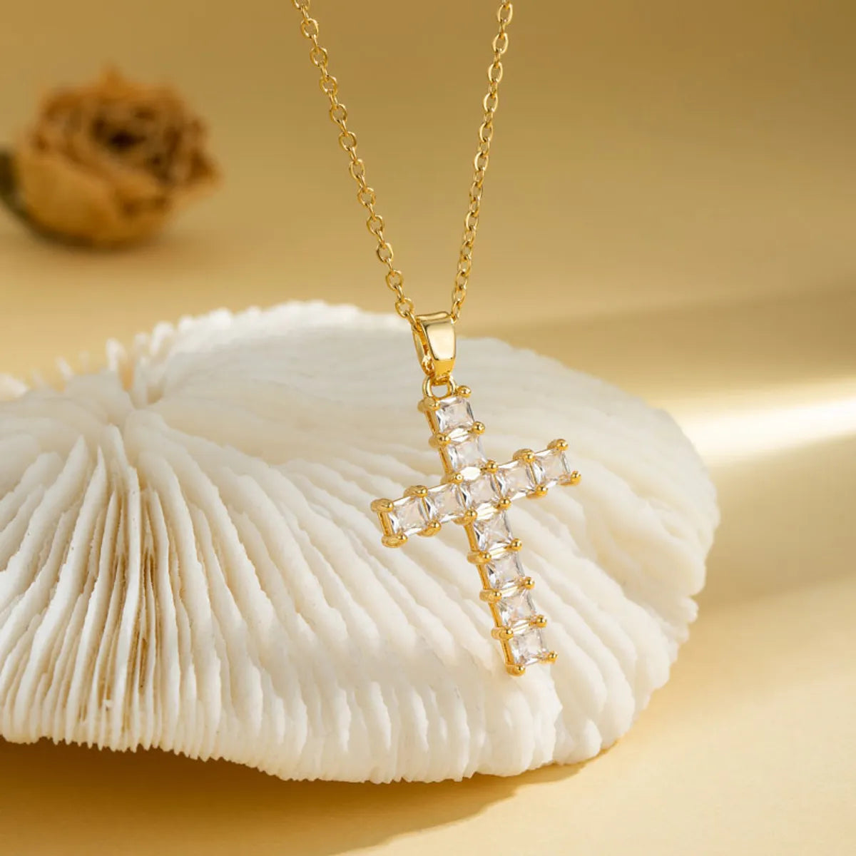 Casual Elegant Cross Heart Shape Flower Stainless Steel Titanium Steel Plating Inlay Zircon 18k Gold Plated Gold Plated Pendant Necklace