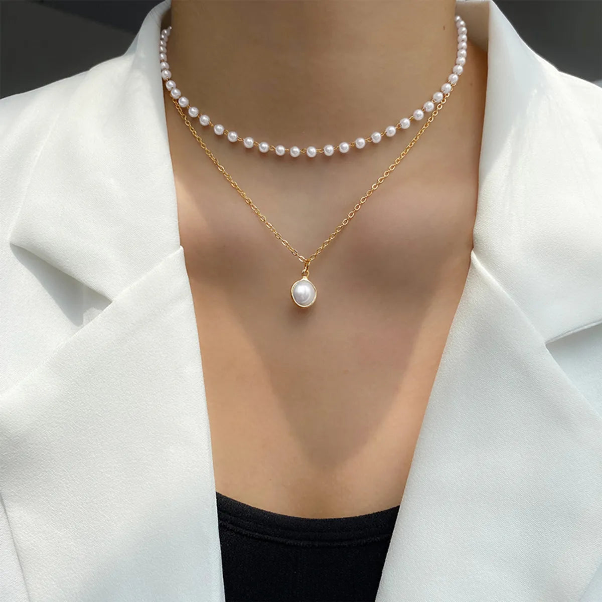 Casual Elegant Lady Geometric Alloy Plastic Layered Women'S Double Layer Necklaces Pendant Necklace