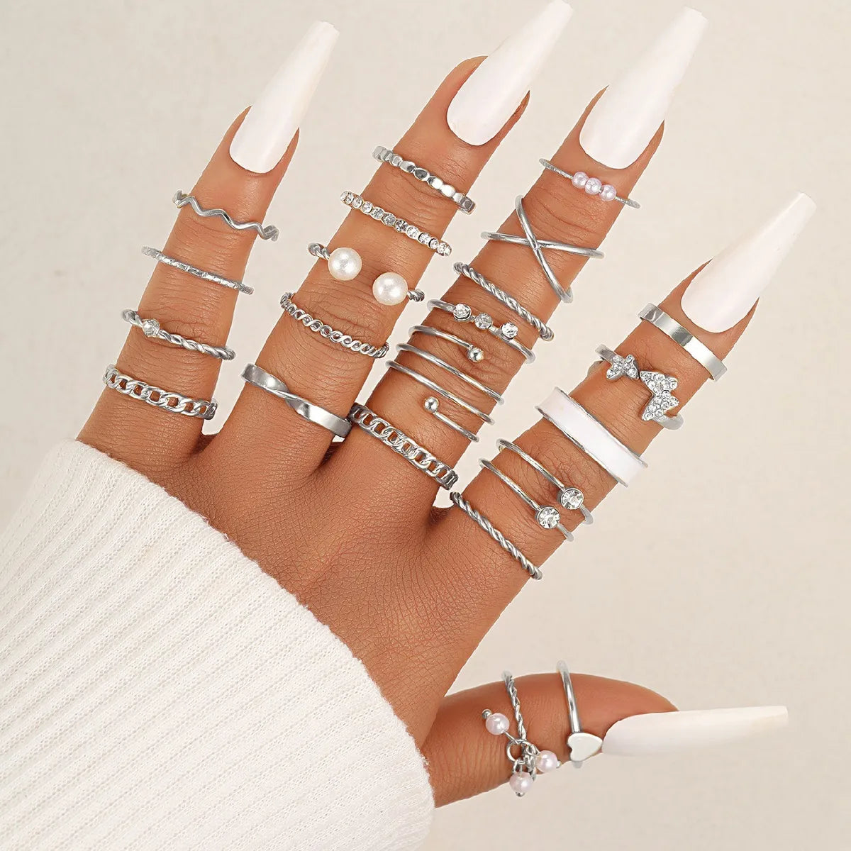 Casual Simple Style Heart Shape Flower Butterfly Alloy Inlay Pearl Zircon Women'S Open Rings Rings