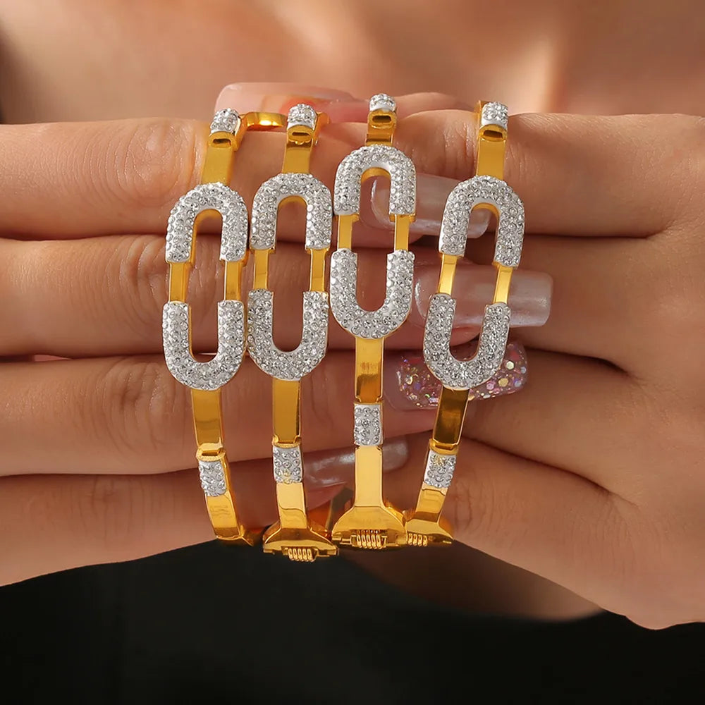 Casual Simple Style Round Lines 304 Stainless Steel 18K Gold Plated Rhinestones Bangle In Bulk