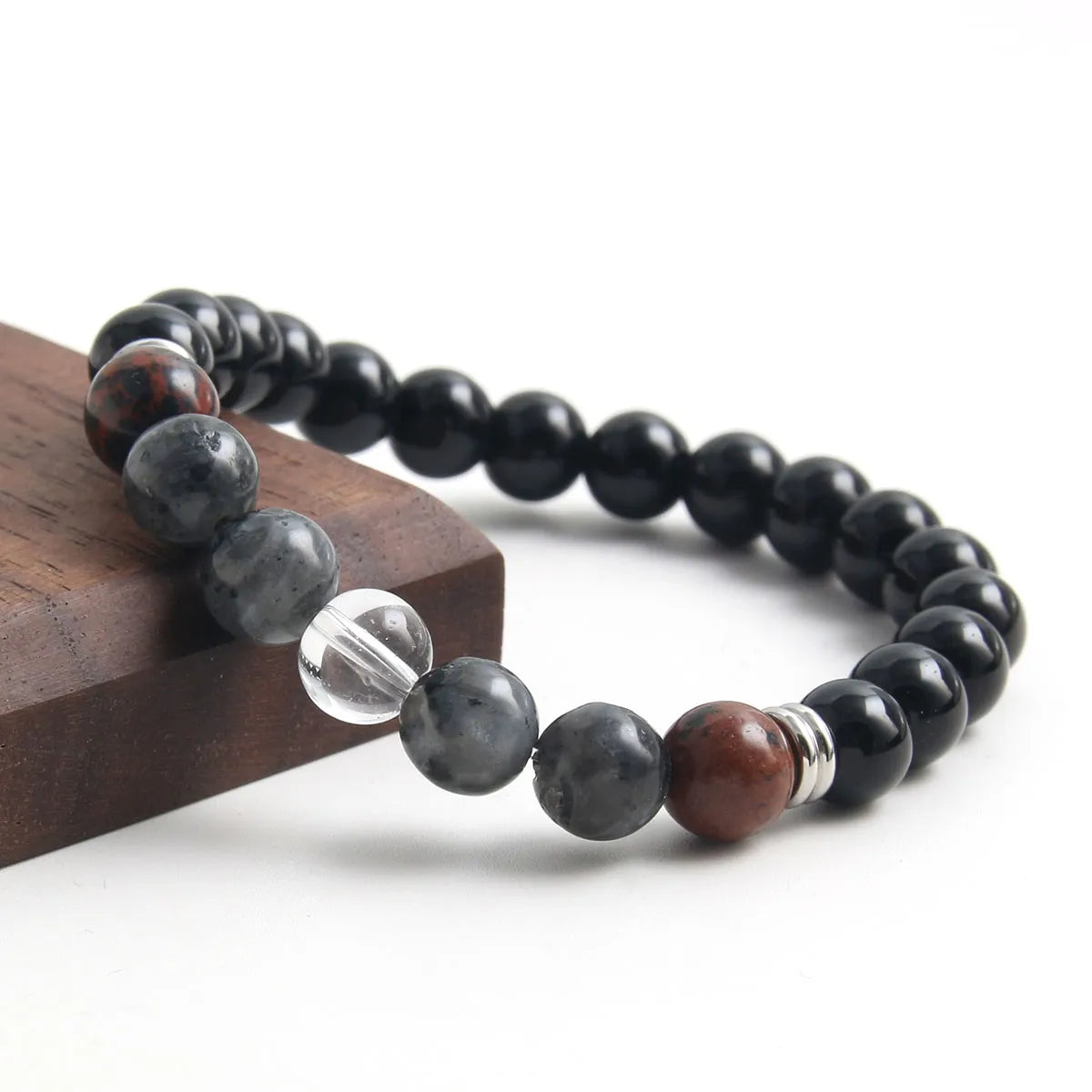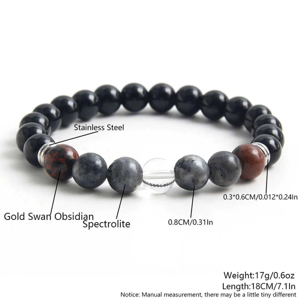 Classic Style Commute Round 304 Stainless Steel Natural Stone Beaded Handmade Men'S Bracelets