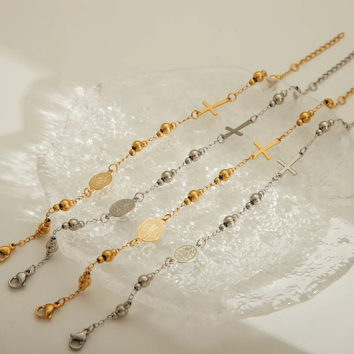 Classical Classic Style Cross 201 Stainless Steel Bracelets In Bulk