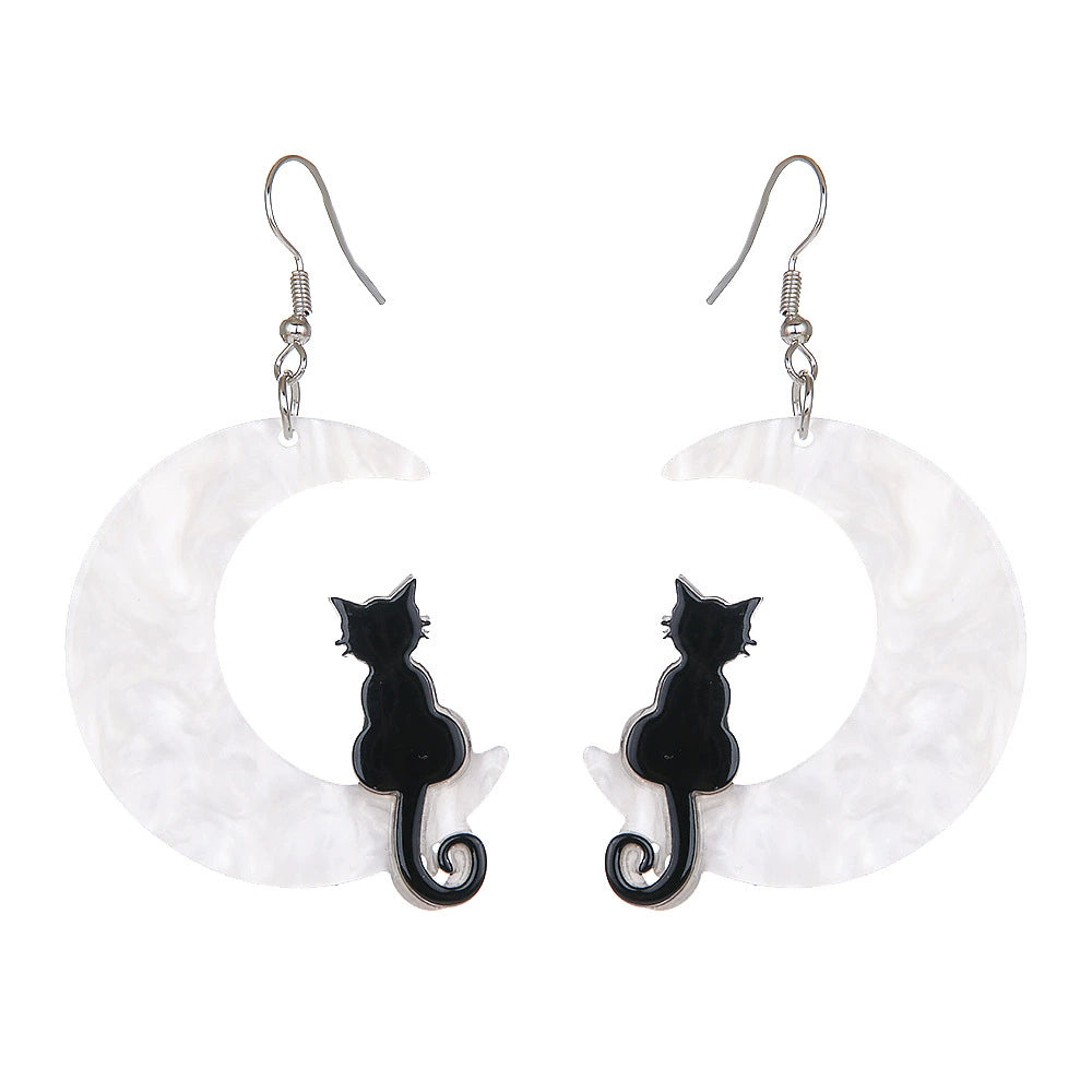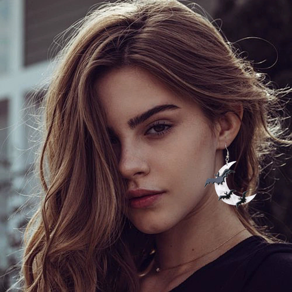 Cool Creative Halloween Moon Bat Acrylic Handmade Earrings