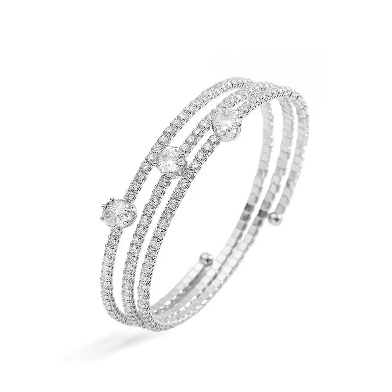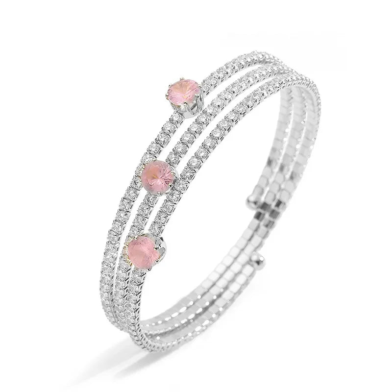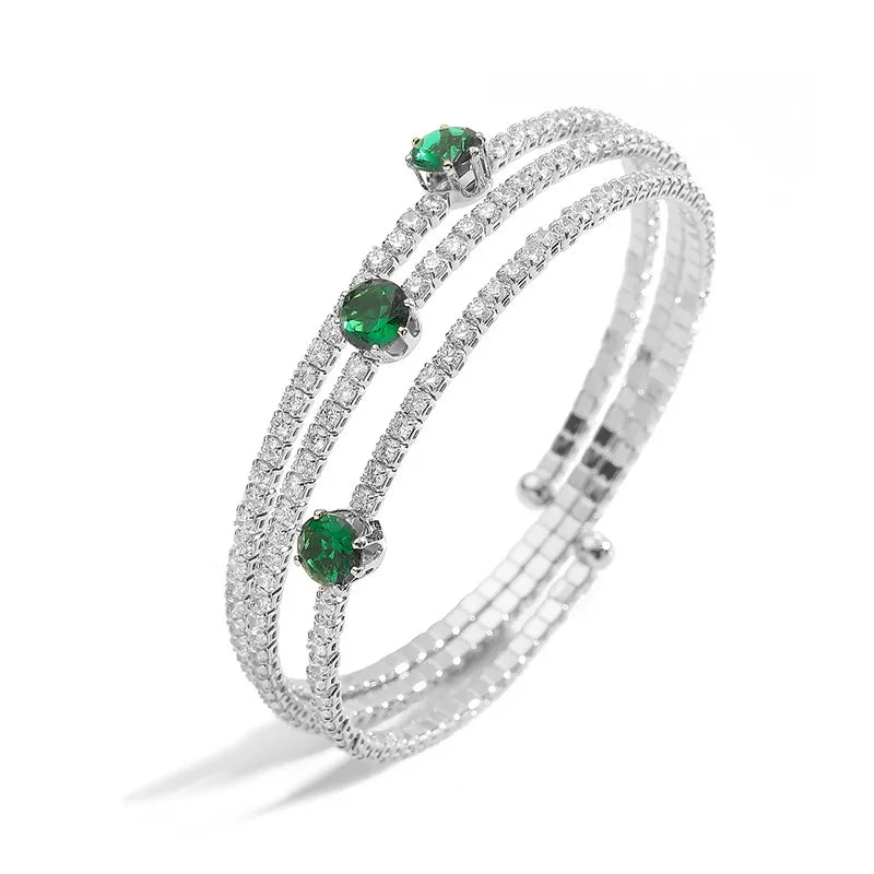Copper 18K Gold Plated Plating Inlay Square Rhombus Zircon Bangle