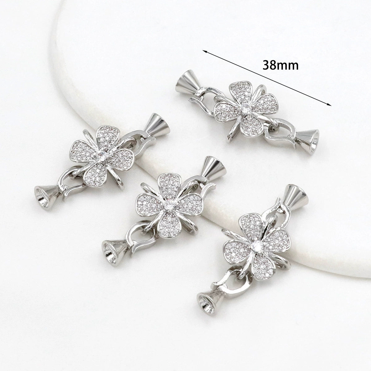Copper Fourleaf Clover Micropaved Zircon Jewelry Accessories Electroplated Bracelet Necklace Buckle