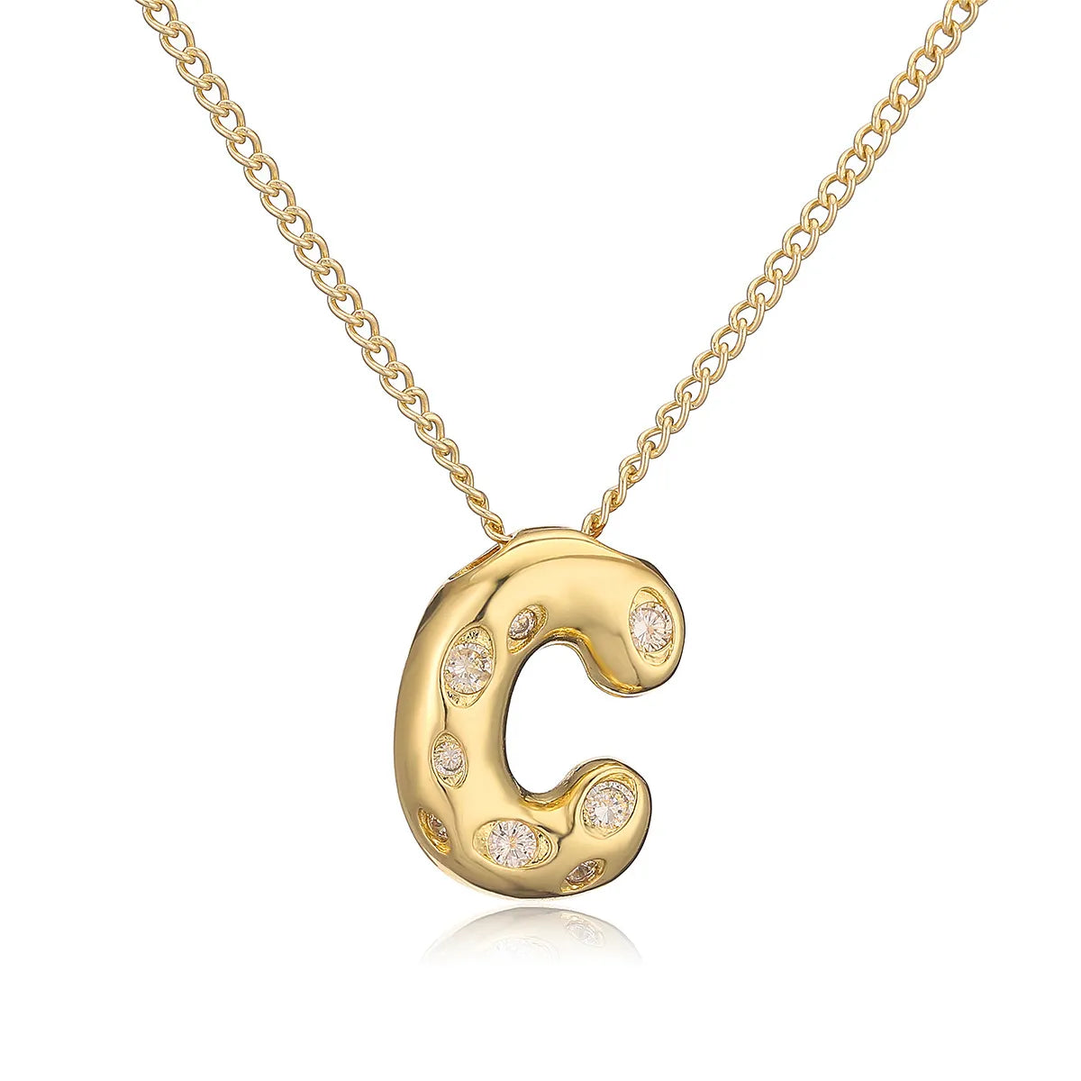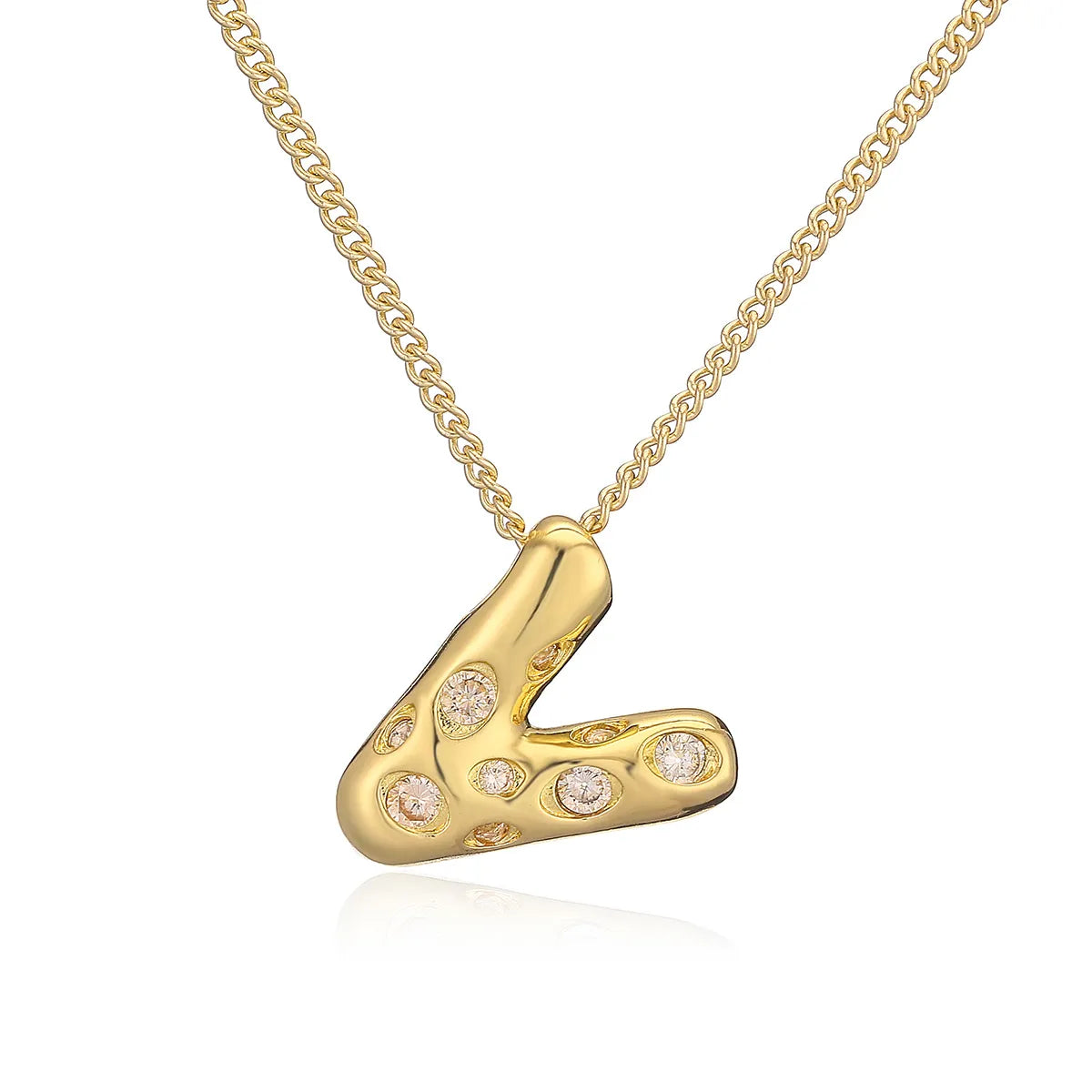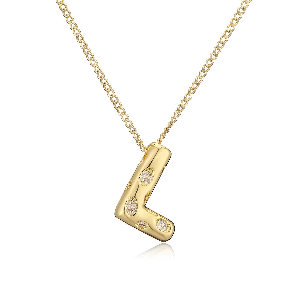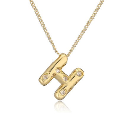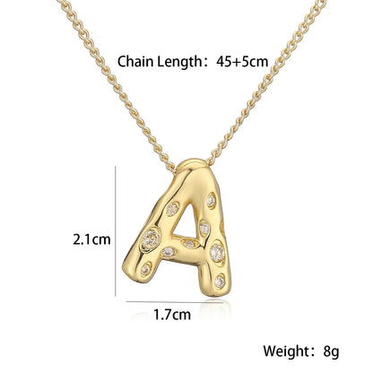 Copper Gold Plated Inlay Letter Zircon Pendant Necklace