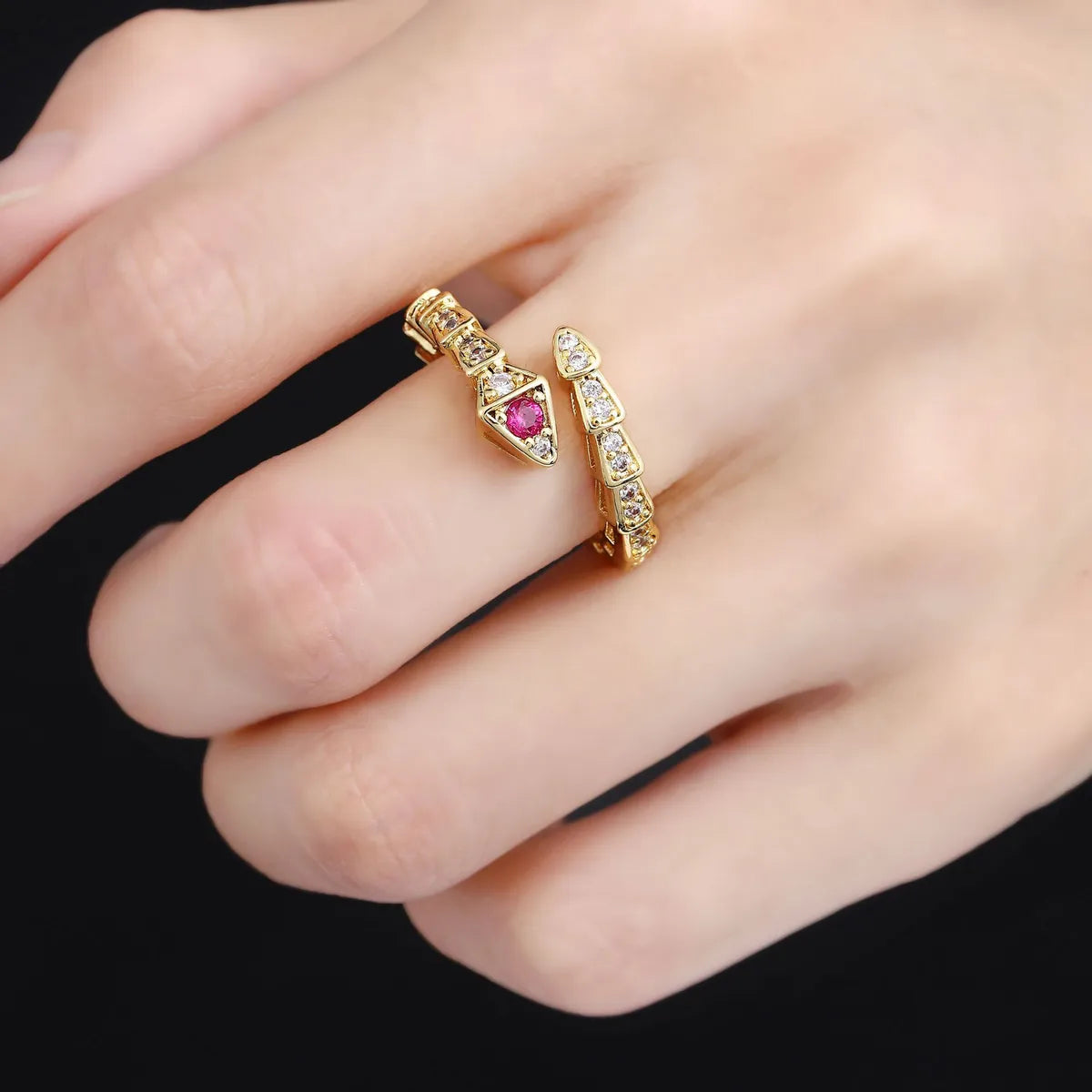 Copper Gold Plated Retro Plating Inlay Snake Zircon Open Rings