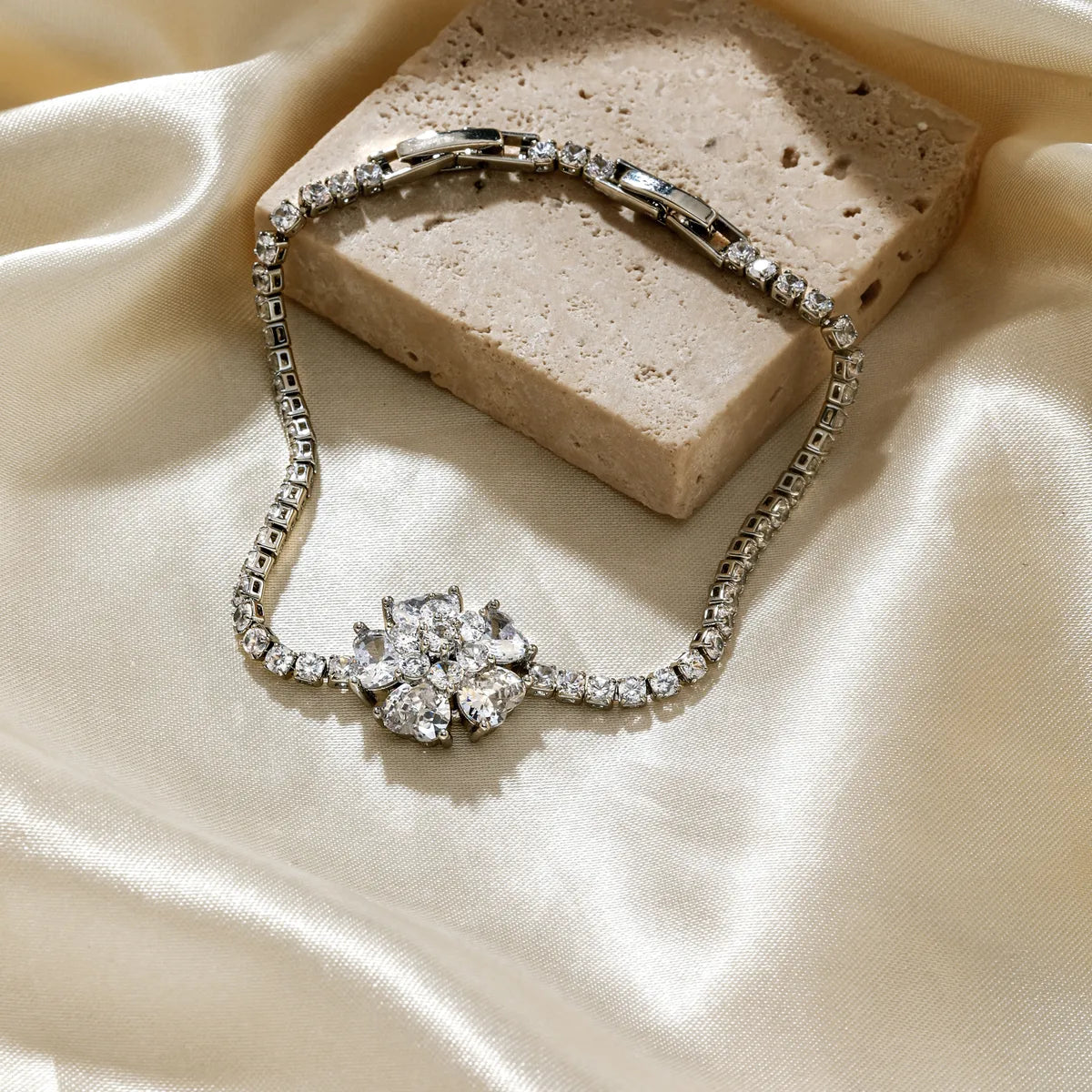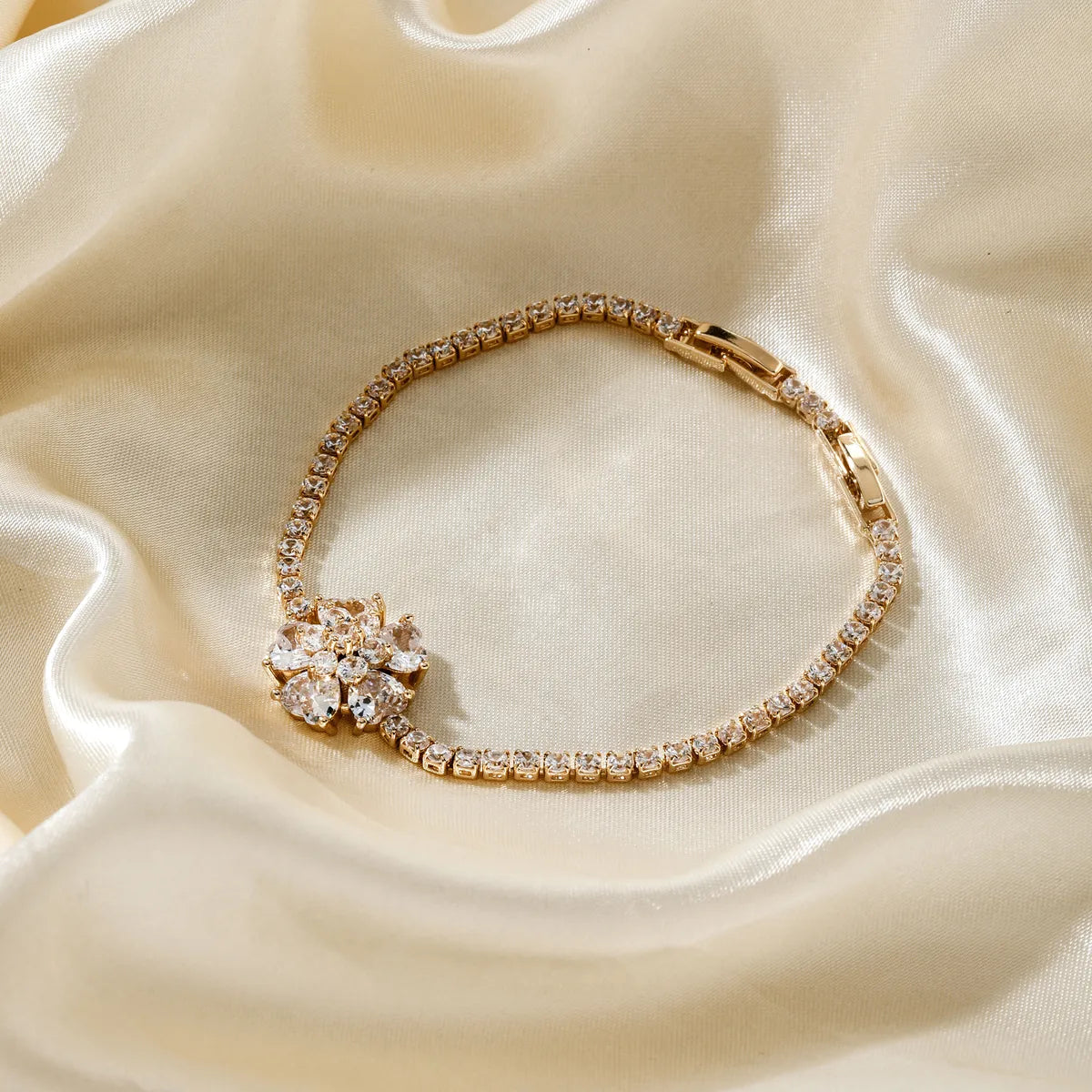 Copper K Gold Plated Inlay Flower Zircon Bracelets