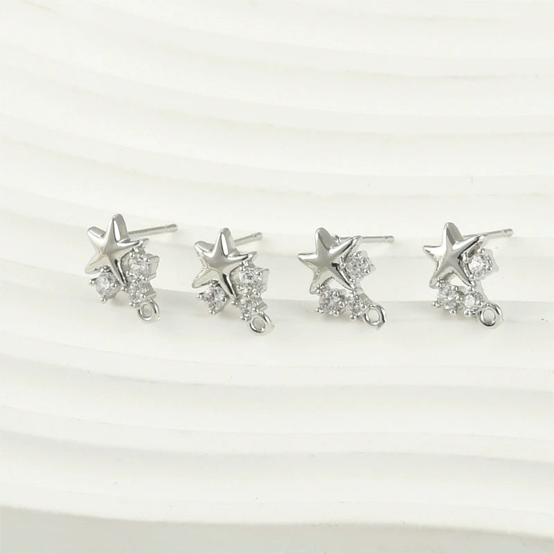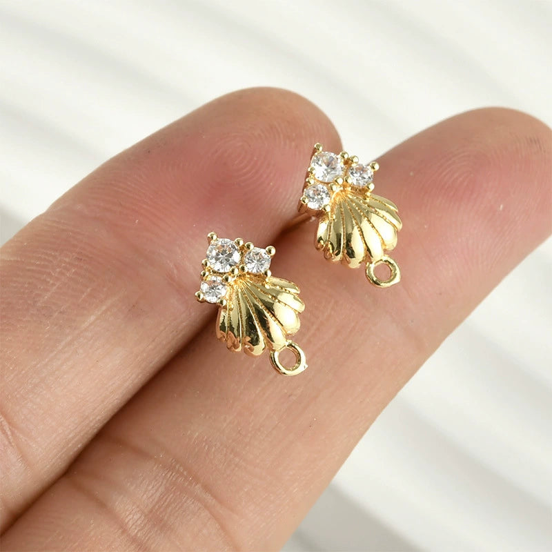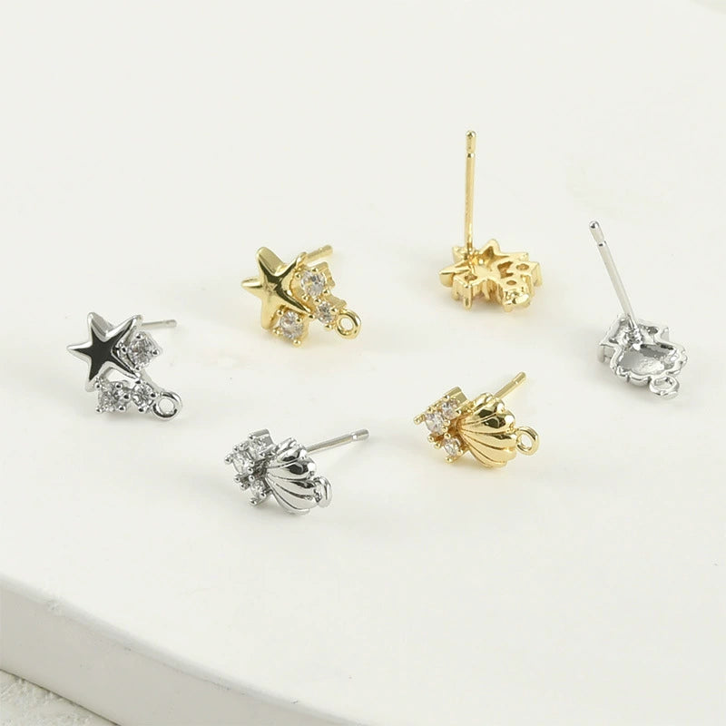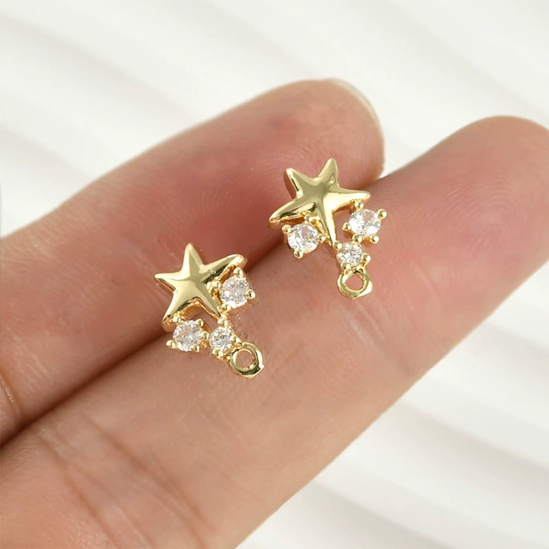 Copper Starfish Shell Earrings Jewelry Accessories Materials With 14K Gold Color Plated And Inlaid Zircon Electroplating