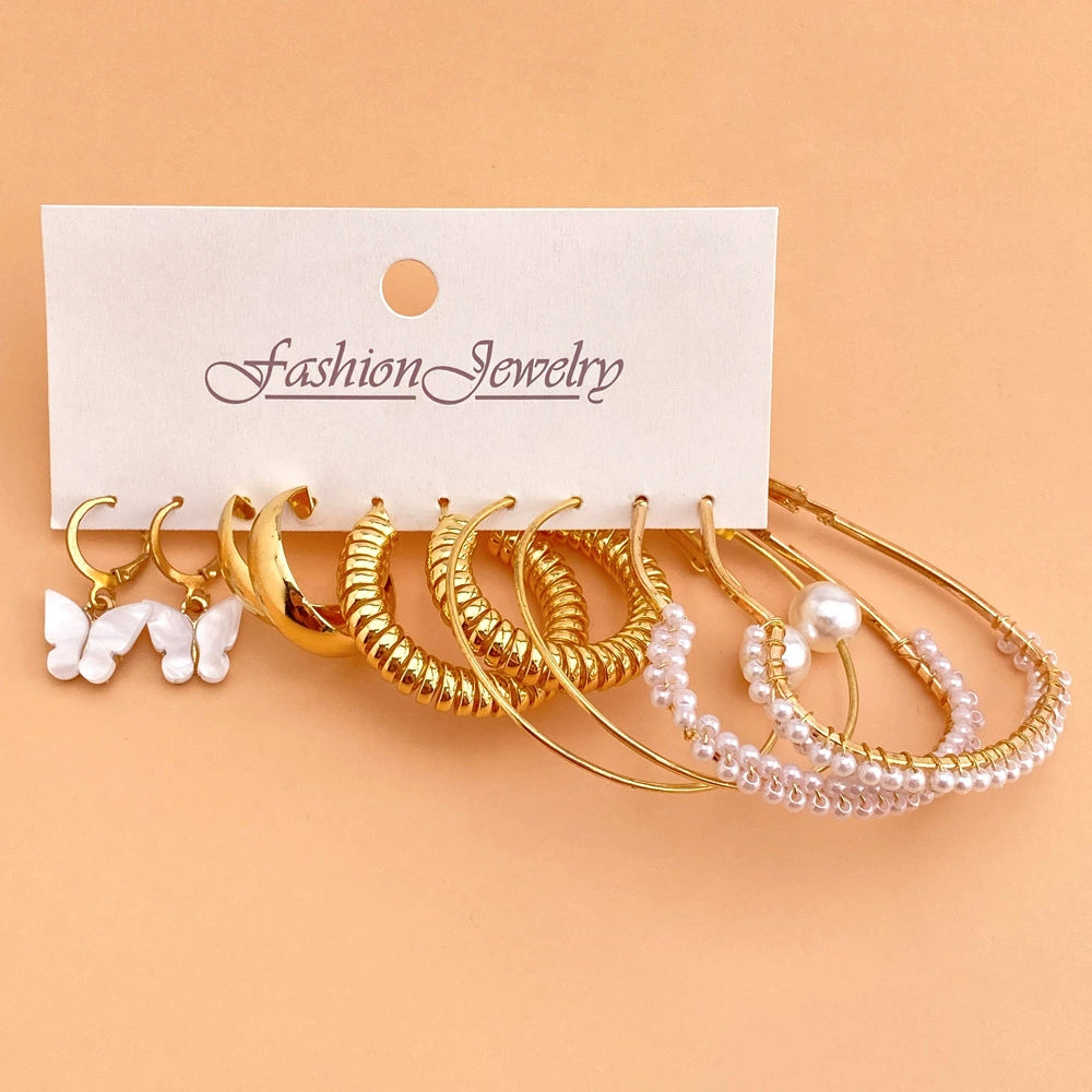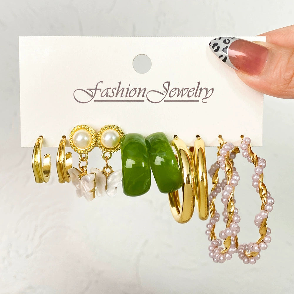 Creative Vintage Circle Earrings Set With Acrylic Butterfly Pendant Crystal And Alloy Micro Inlay