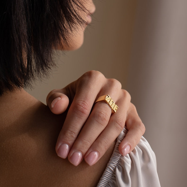 The perfect statement ring for the trendsetter in you. Our Bold Name Ring is crafted with a thick yet light-weight design, perfect to add to your daily rotation. Completed with your own personalization for a special touch, unique to you.