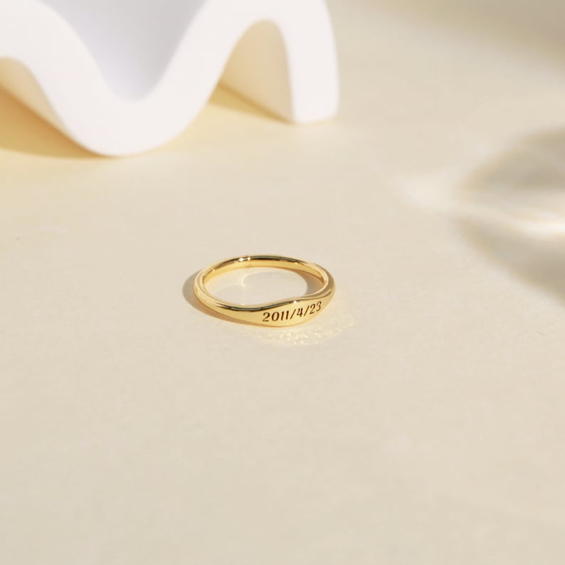 This sophisticated personalized mini signet ring combines minimalism with elegance. Personalize it with a name, initials or a brief message to create a personal touch that will warm the hearts of your best friends, bridesmaids and sweethearts. Sweet, meaningful and timeless, this custom ring will complement a variety of outfits.