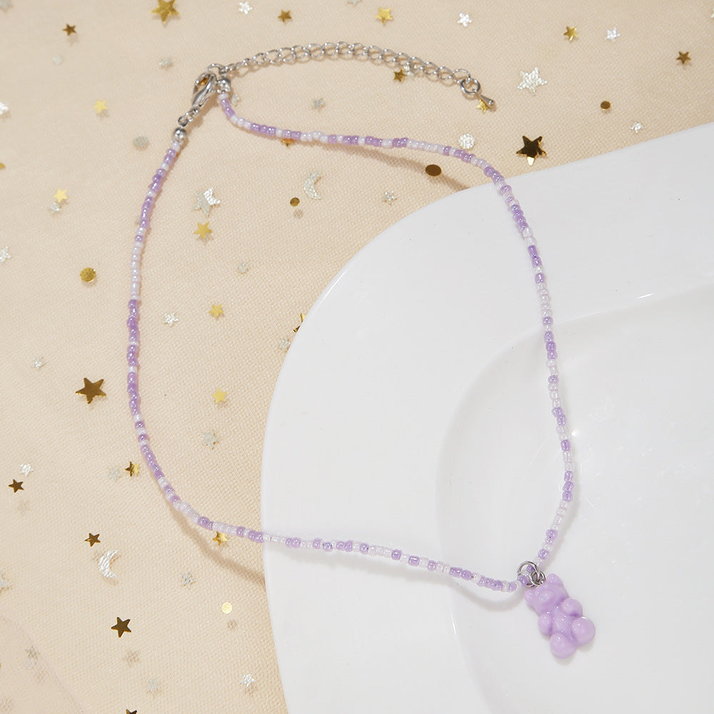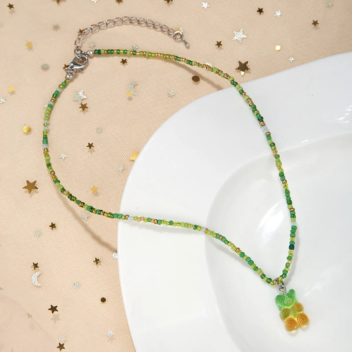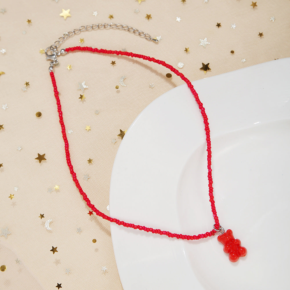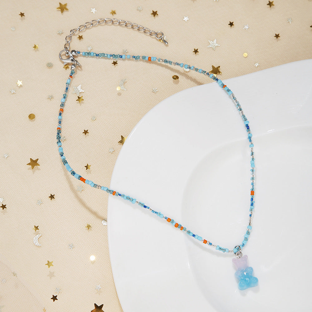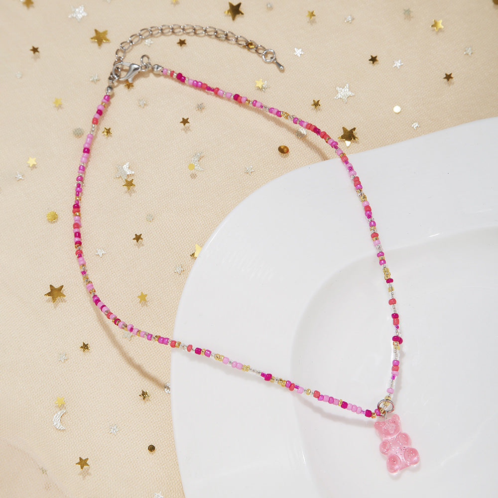 Cute Bear Resin Glass Beaded Women's Pendant Necklace