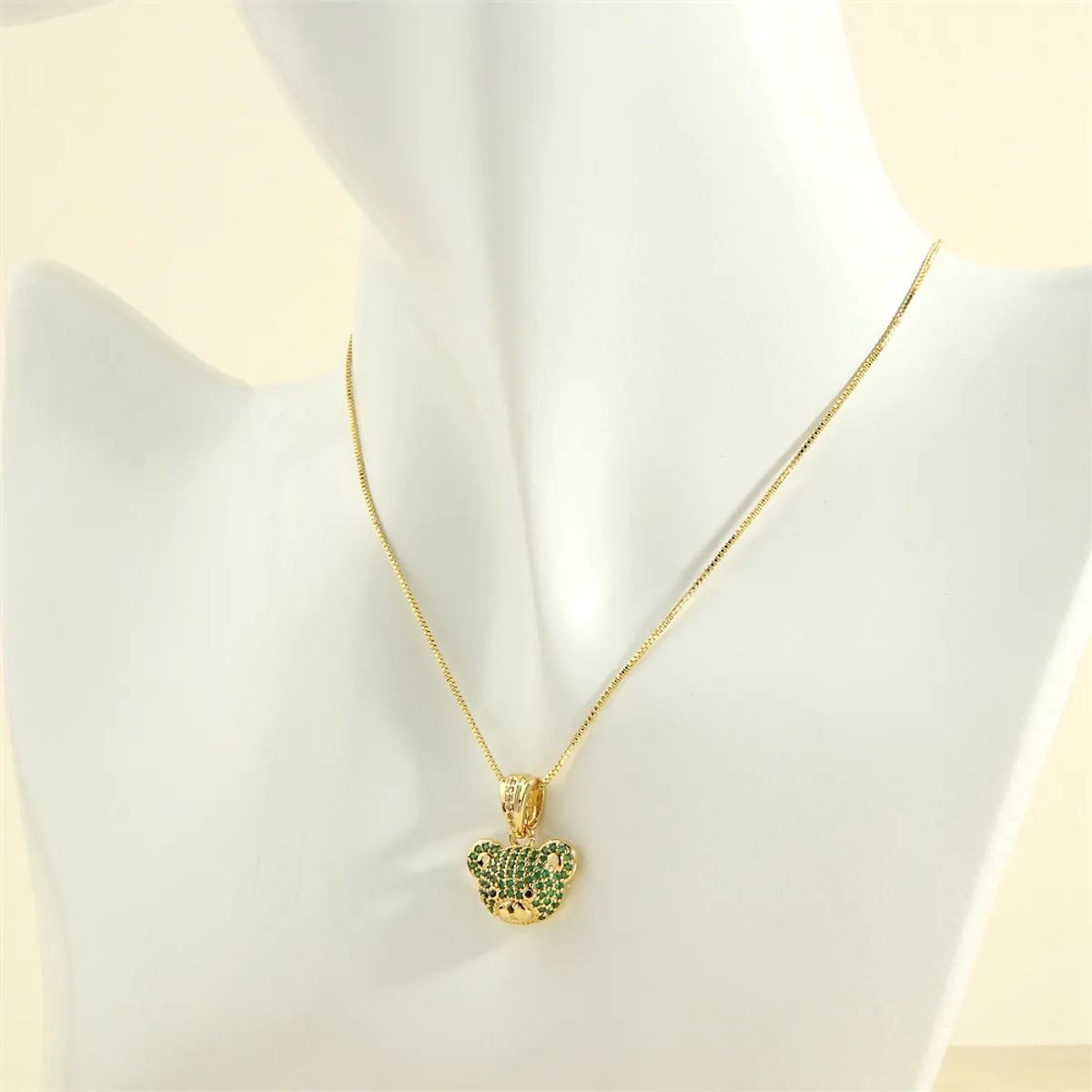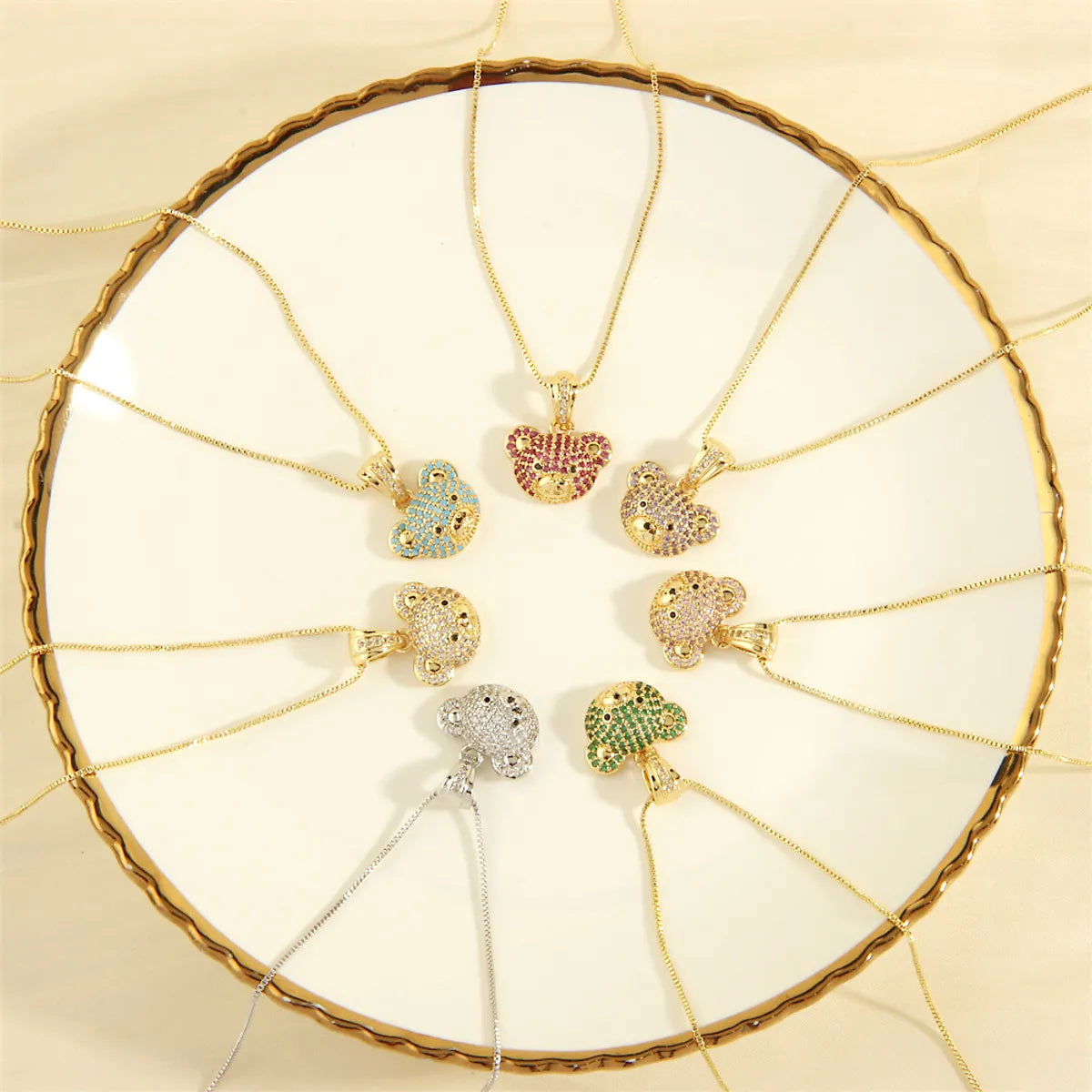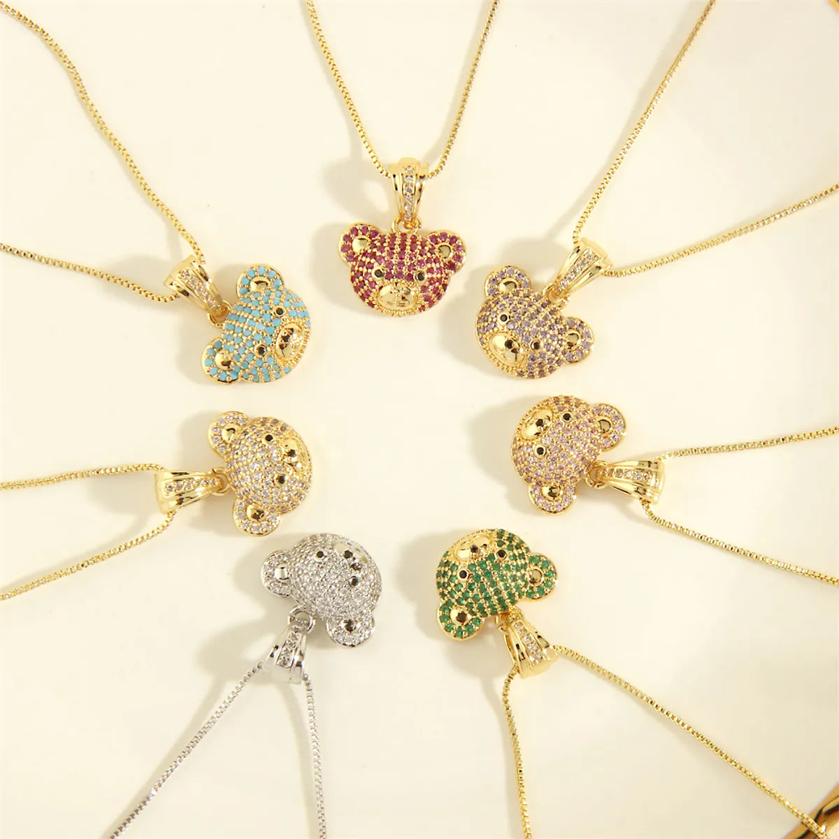 Cute Simple Style Little Bear Copper 18k Gold Plated Zircon Pendant Necklace In Bulk