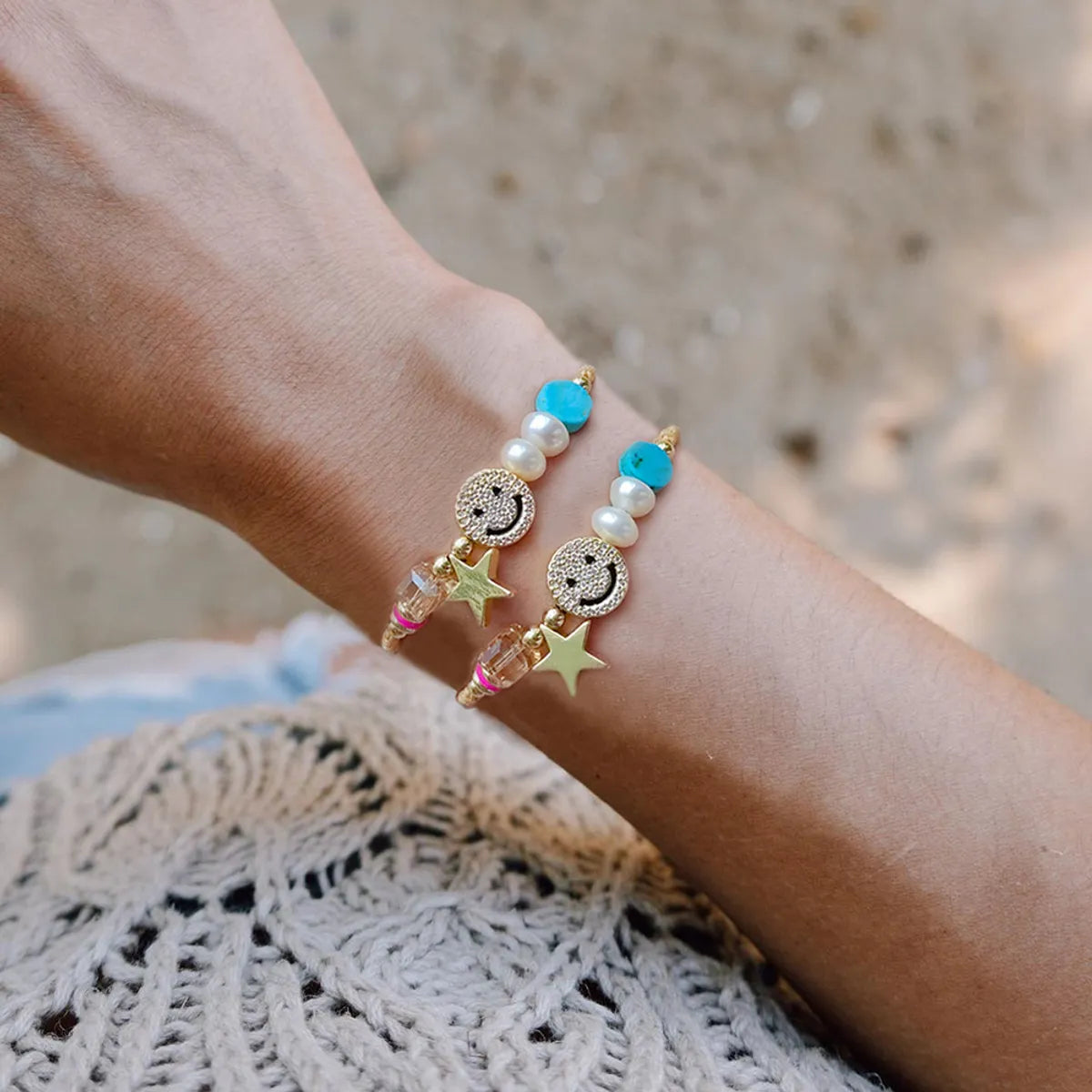 Cute Star Freshwater Pearl Rope Copper Knitting Plating Inlay Rhinestones 18k Gold Plated Women'S Bracelets