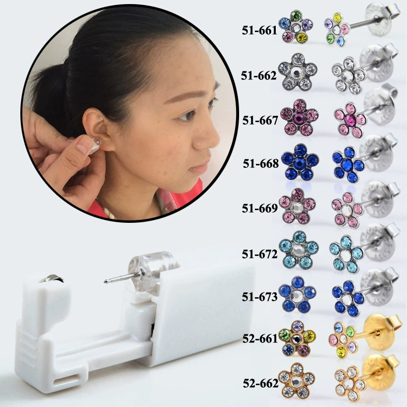 Disposable Lowpain Ear Piercing Gun 316L Stainless Steel Flower Ear Stud Simple Style Unisex