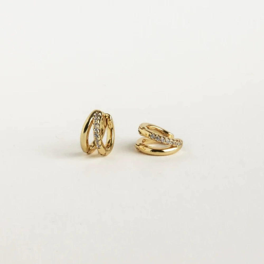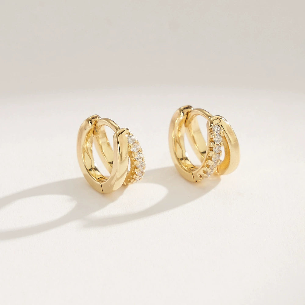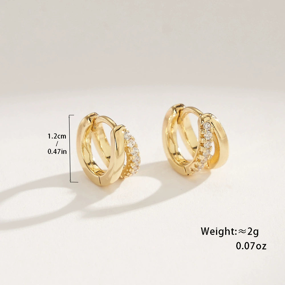 Doublering Geometric Copper Earrings With Zircon Inlay